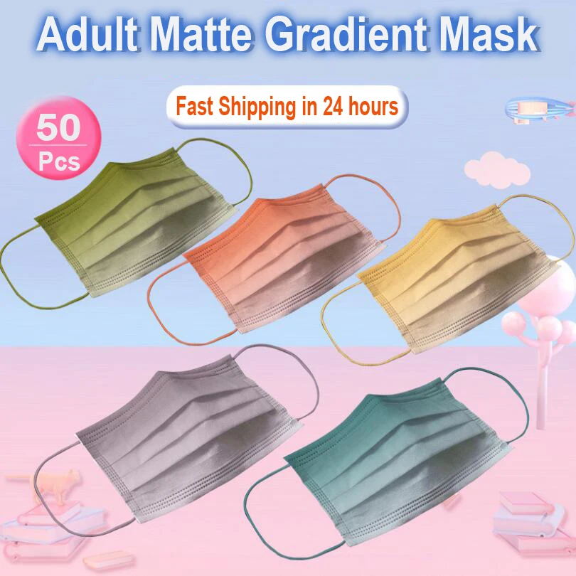 50 шт., матовые градиентные цвета, новые градиентные 5 цветов, Синяя Маска для лица с принтом, женская серая тушь
