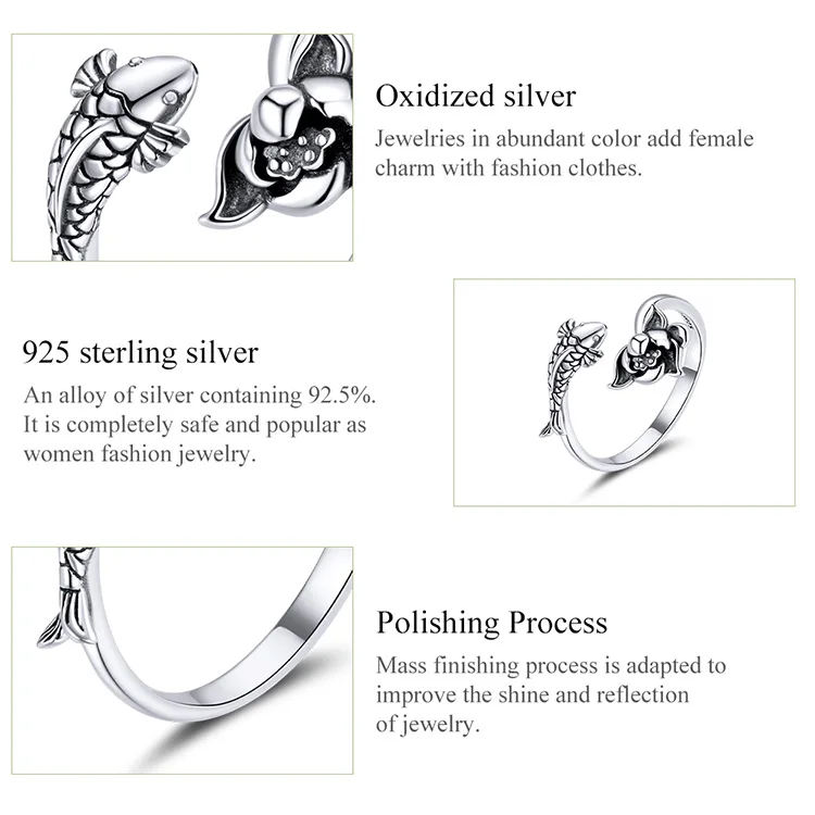 Женское серебряное кольцо в виде лотоса и кои