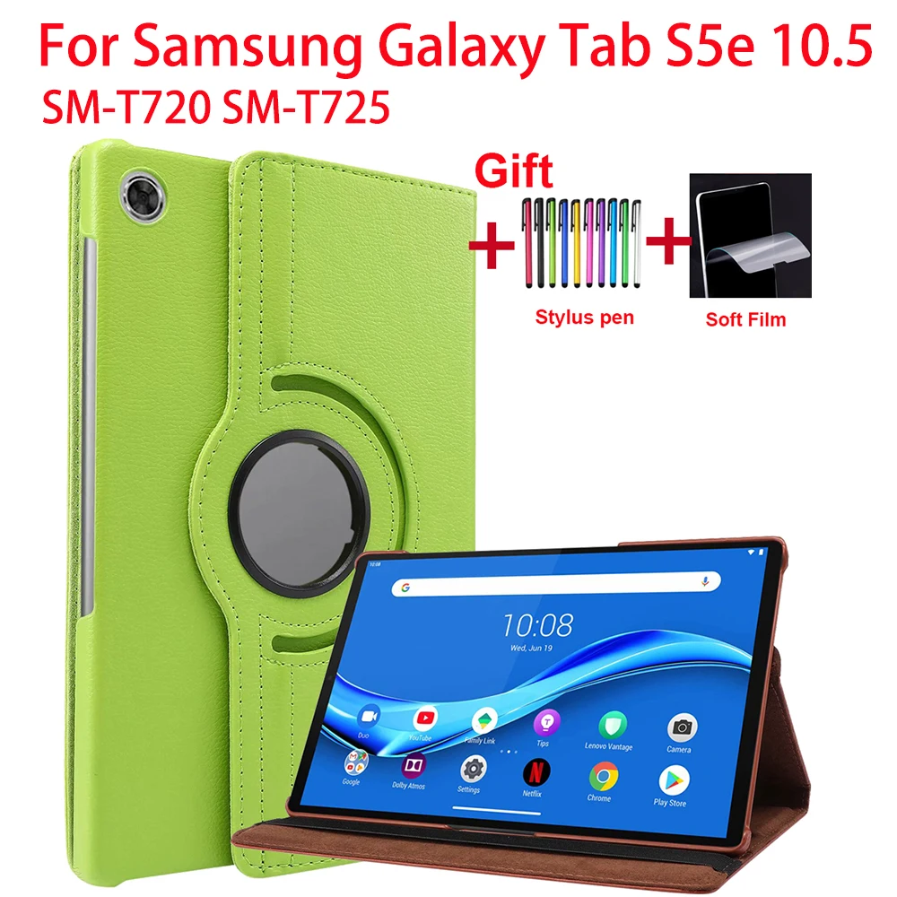 Вращающийся на 360 градусов чехол для Samsung Galaxy Tab S5e 10,5, чехол-книжка для планшета 2019, SM-T720, SM-T725, 10,5 дюйма, кожаный чехол-подставка с ручкой и пленкой