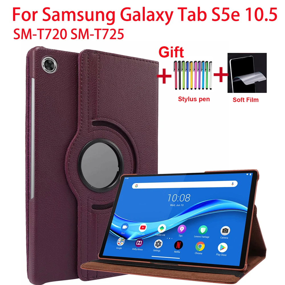 Вращающийся на 360 градусов чехол для Samsung Galaxy Tab S5e 10,5, чехол для планшета 2019 SM-T720 SM-T725 дюйма, кожаный чехол-подставка с ручкой и пленкойХарактеристики продукта:* 100% новые чехлы.* Прочный и моющийся.* Изготовлен из высококачественного материала.* Защитите от пыли, царапин и ударов* Модный дизайн, легко надеть и легко снятьСовместимость:Для Samsung Galaxy S5e 10,5 T720 T725Посылка входит:1 х защитный чехол1 стилус1 х мягкая пленка для экрана