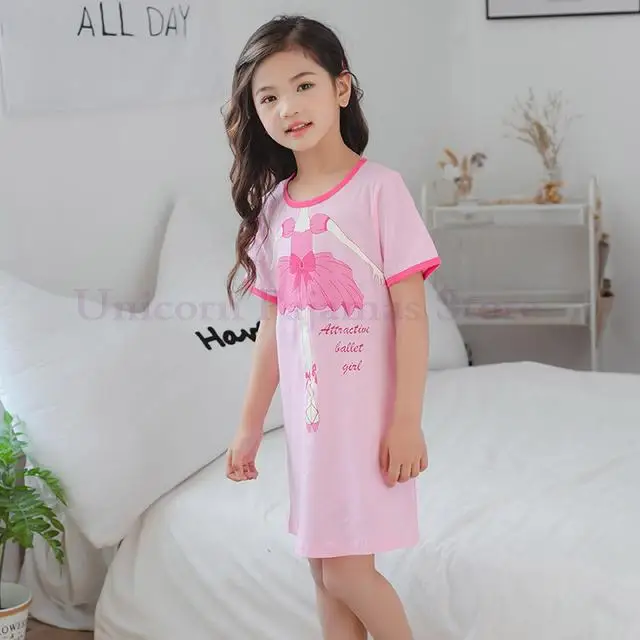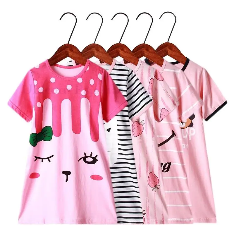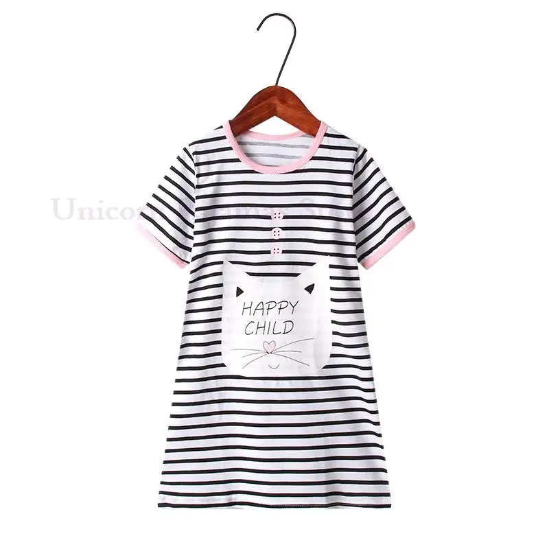 Пижамные платья для маленьких девочек, ночное платье с рисунком мультяшного кота для детей, детские розовые милые ночные рубашки, повседневная одежда для сна, Пижама для подростков