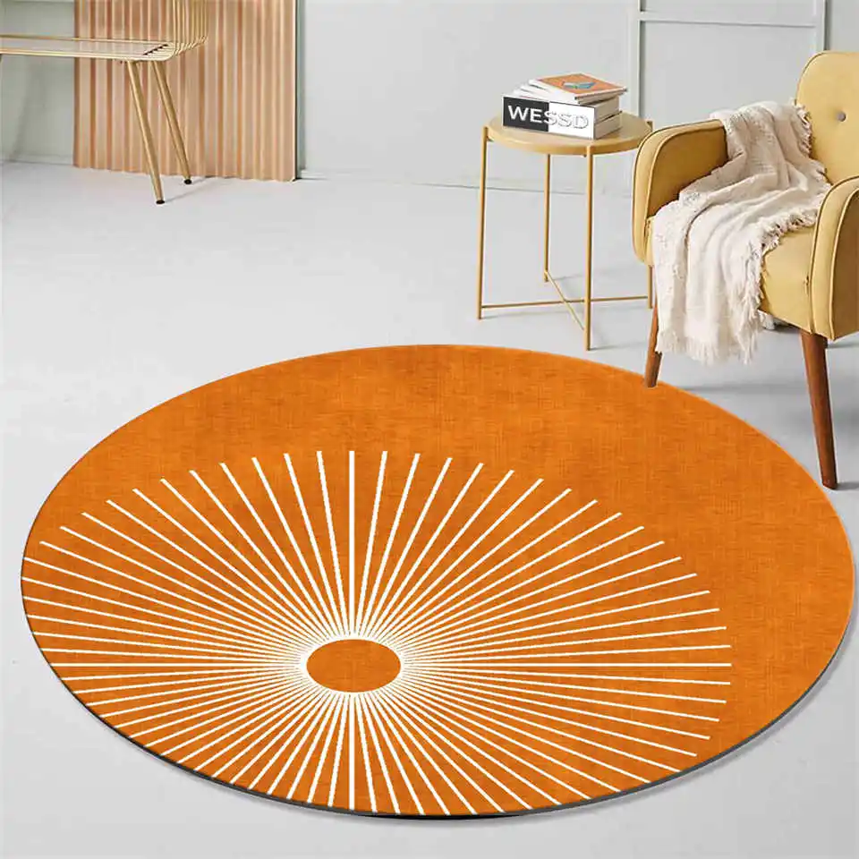 Современный роскошный оранжевый круглый ковер с белой линией, абстрактная фотография для центрального стола, гостиной, коврик для стула