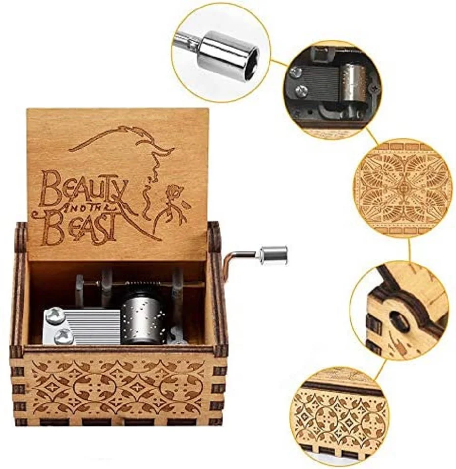 [Романтичная музыкальная шкатулка подарок]: Наша деревянная музыкальная шкатулка с ручным козырьком-романтический подарок для жен, мужей, подруг и бойфрендов с гравировкой «Красавица и Чудовище».