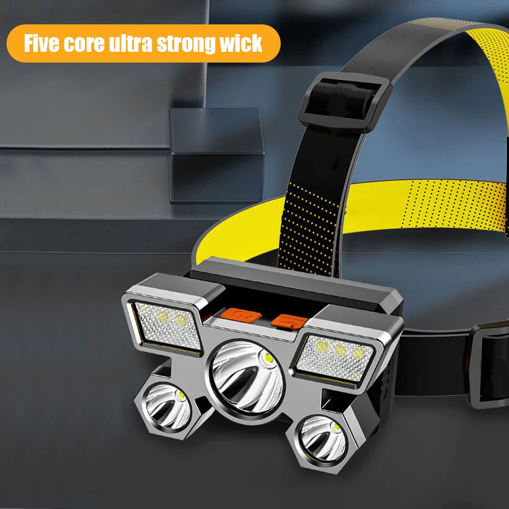 Портативный налобный фонарь Xiwangfire, 5 светодиодов, зарядка чере...
