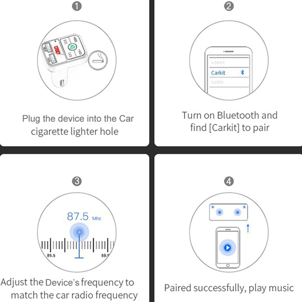 Bluetooth-модулятор Автомобильный с 2 USB-портами, 5,0 А