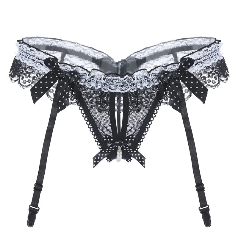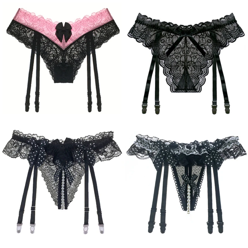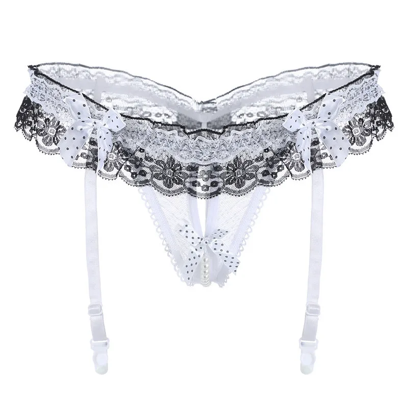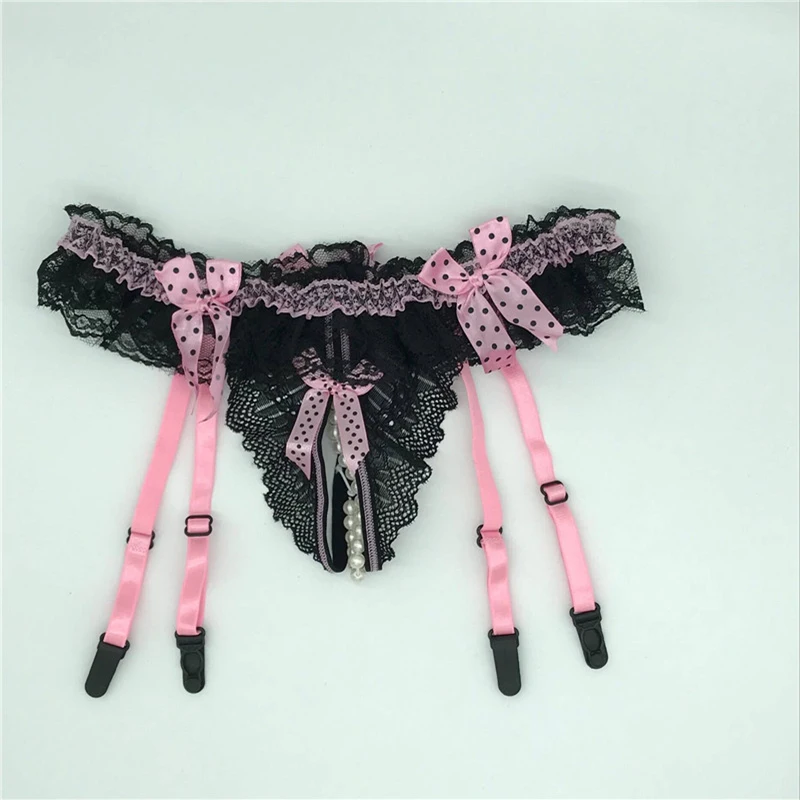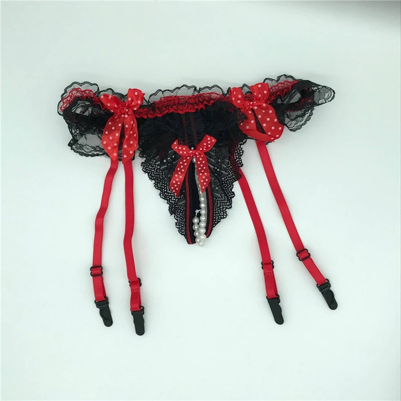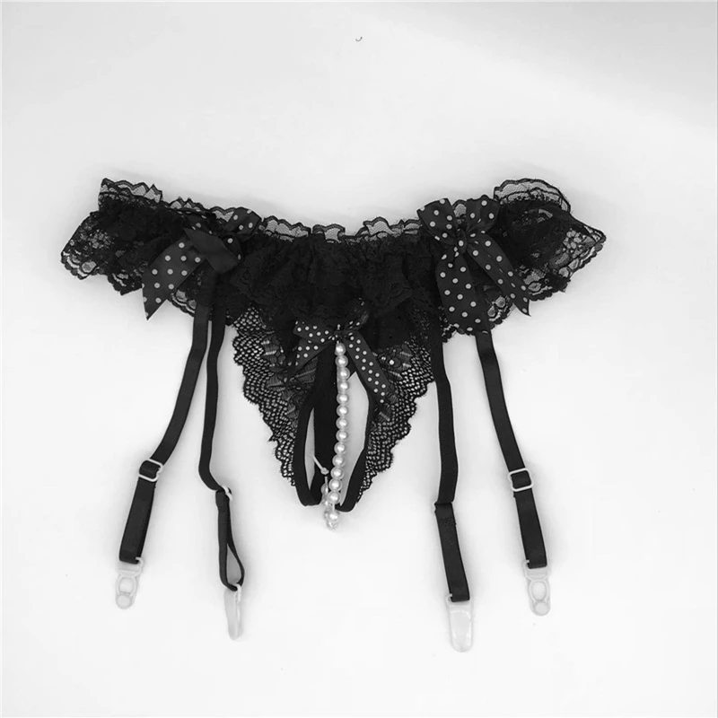 Женский сексуальный кружевной прозрачный пояс для чулок, бесшовное интимное нижнее белье, жемчужные массажные трусики с поясом на подтяжках для чулок