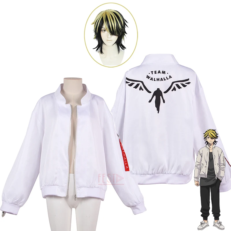 Костюм для косплея ханемия казутора из Токио, костюм для Хэллоуина, белое пальто, бейсбольная форма, золотой черный парик, микей дрокен