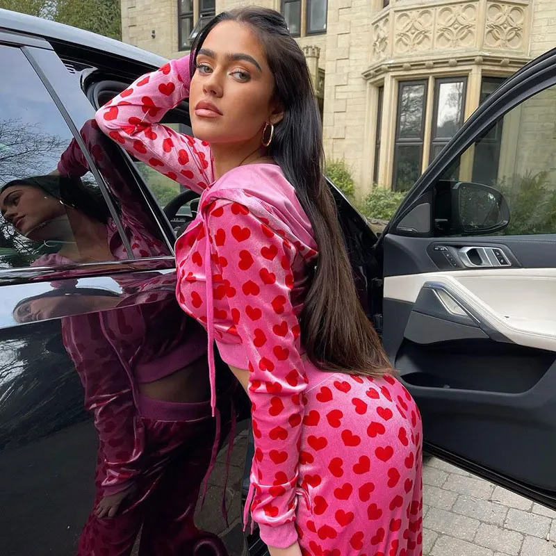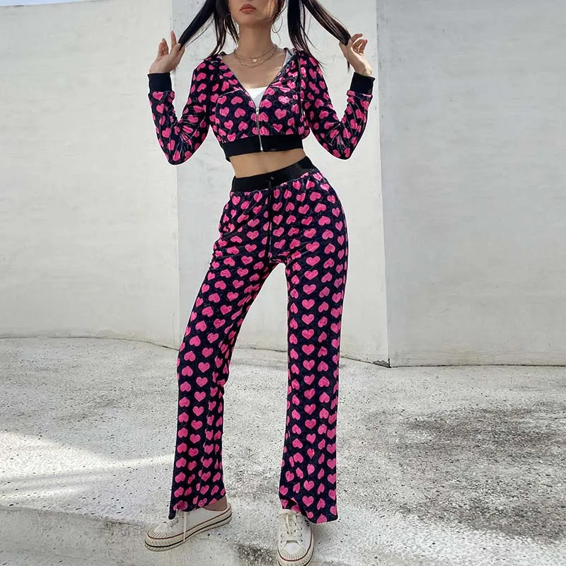 Женский спортивный костюм с принтом сердечек, повседневный спортивн...