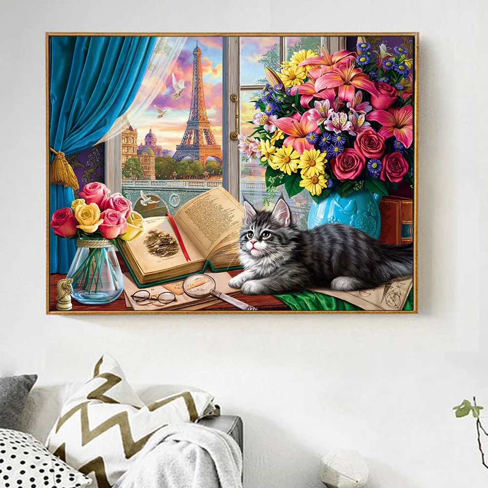 Алмазная живопись с изображением цветов, домашние украшения с животными г.