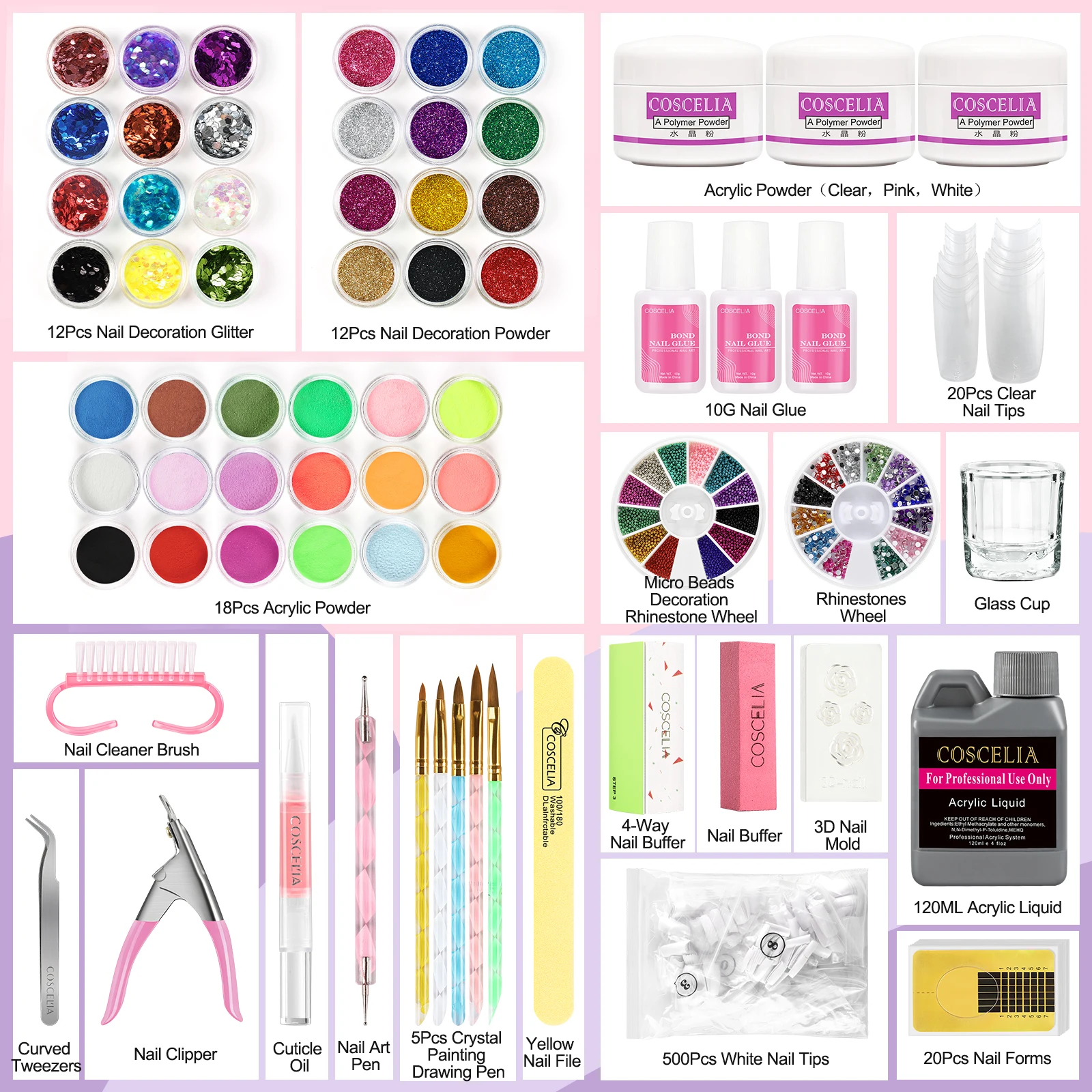 Набор для наращивания ногтей из акрилового геля и жидкой пудры