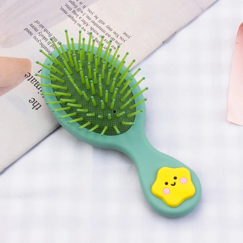 Симпатичная Складная Расческа с подушкой безопасности в форме сердца, мультяшная портативная пластиковая воздушная подушка, массажная расческа для головы с зеркалом для макияжа