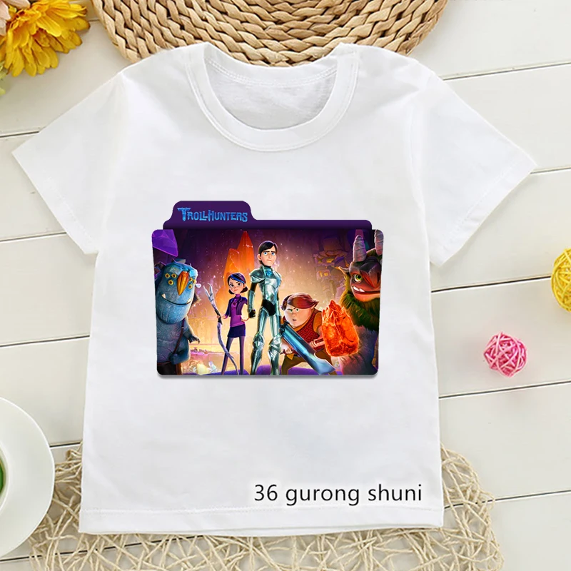 Футболка для мальчиков троллохотников, с принтом персонажей мультфильмов, персонажей мультфильмов, Джим-Лейк джл, Забавная детская одежда, летний топ