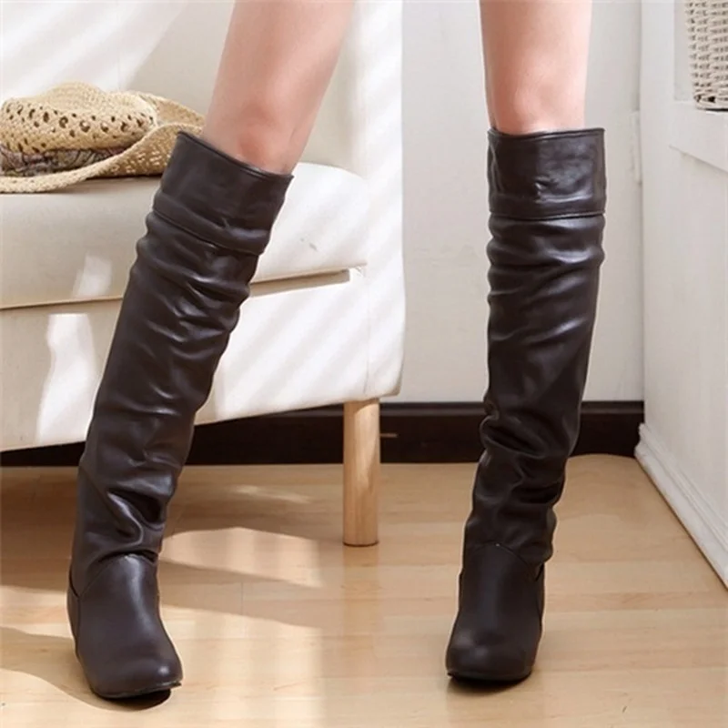 Сапоги до колена, модные женские винтажные сапоги без шнуровки из и...