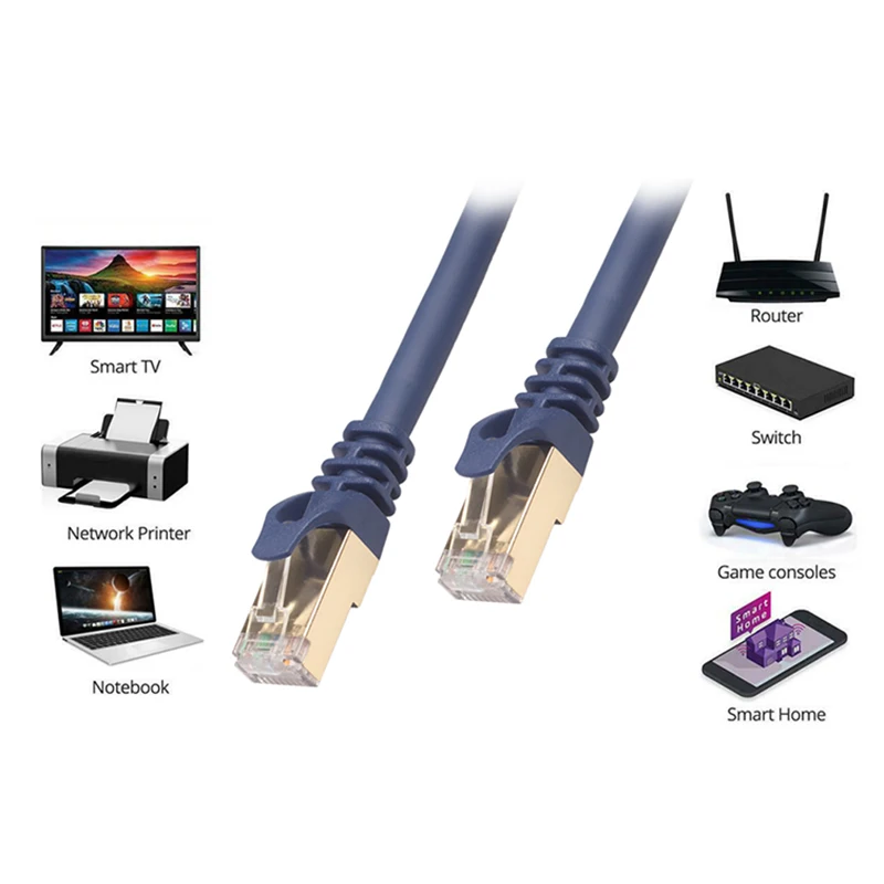 Характеристики продукта: используется высокоэластичный экологически чистый ПВХ-материал, 26 бескислородная медь AWGOFC, стандарт reach CAT8, протестирован испытательным оборудованием. Доступны несколько длин, до 20 метров в длину.