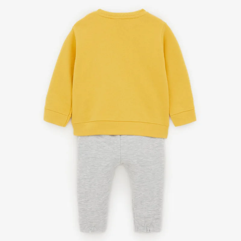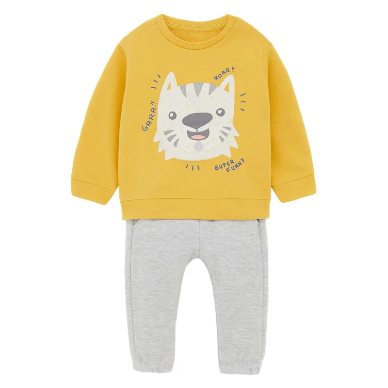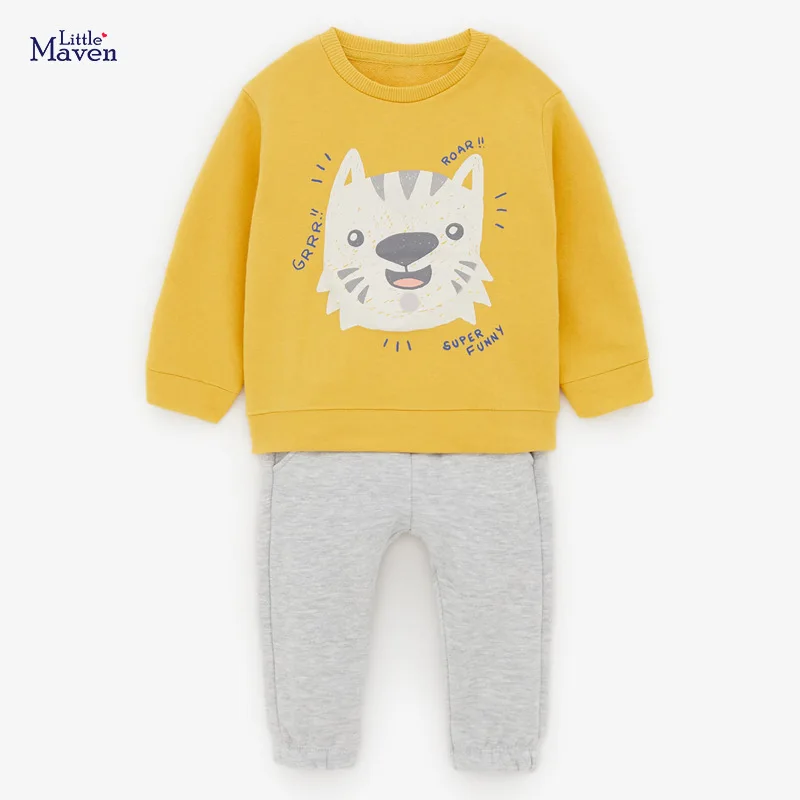 Комплект одежды для малышей Little maven, желтая футболка с собачкой и серые штаны, хлопковая плотная теплая осенняя одежда для мальчиков и девочек