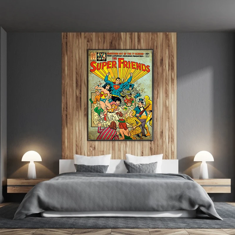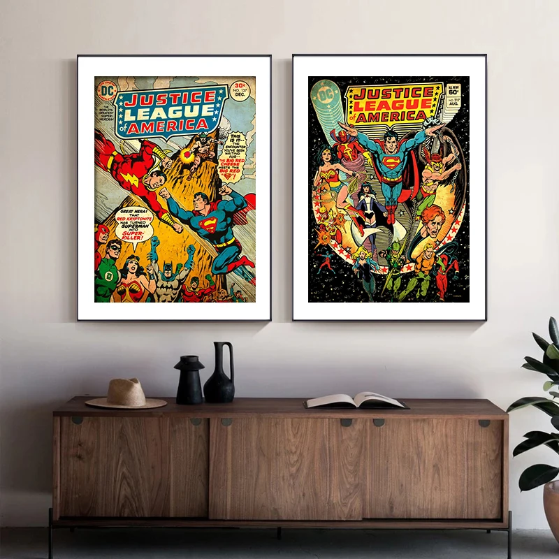 Ретро комикс постер Лиги Справедливости DC, винтажная Картина на холсте ржавчины, чудо-женщина, Бэтмен, Супермен, настенное искусство, украшение для дома