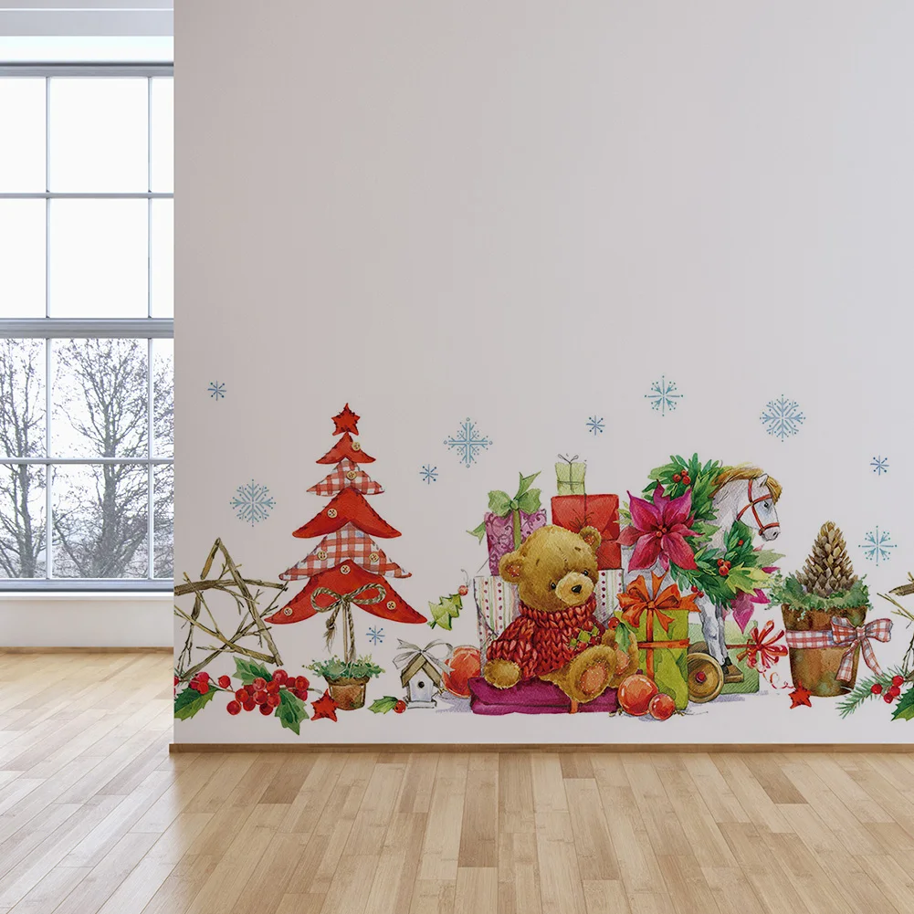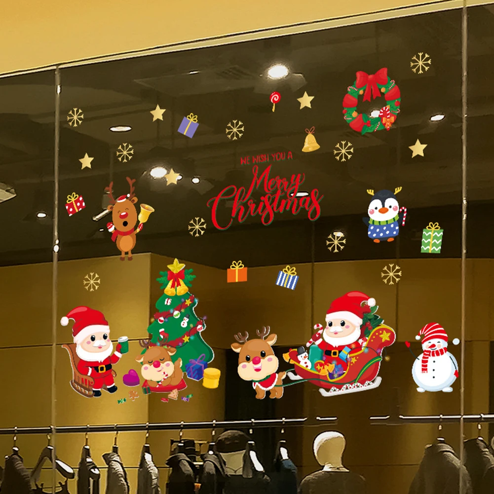 Рождественские наклейки на стены, рождественские украшения для стекла, для дома, Наклейки на стены, новогодние наклейки для дома, декоративные фрески, 2022