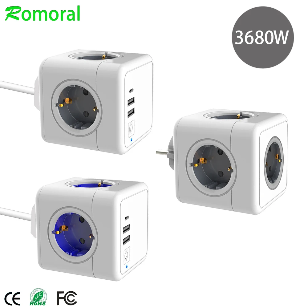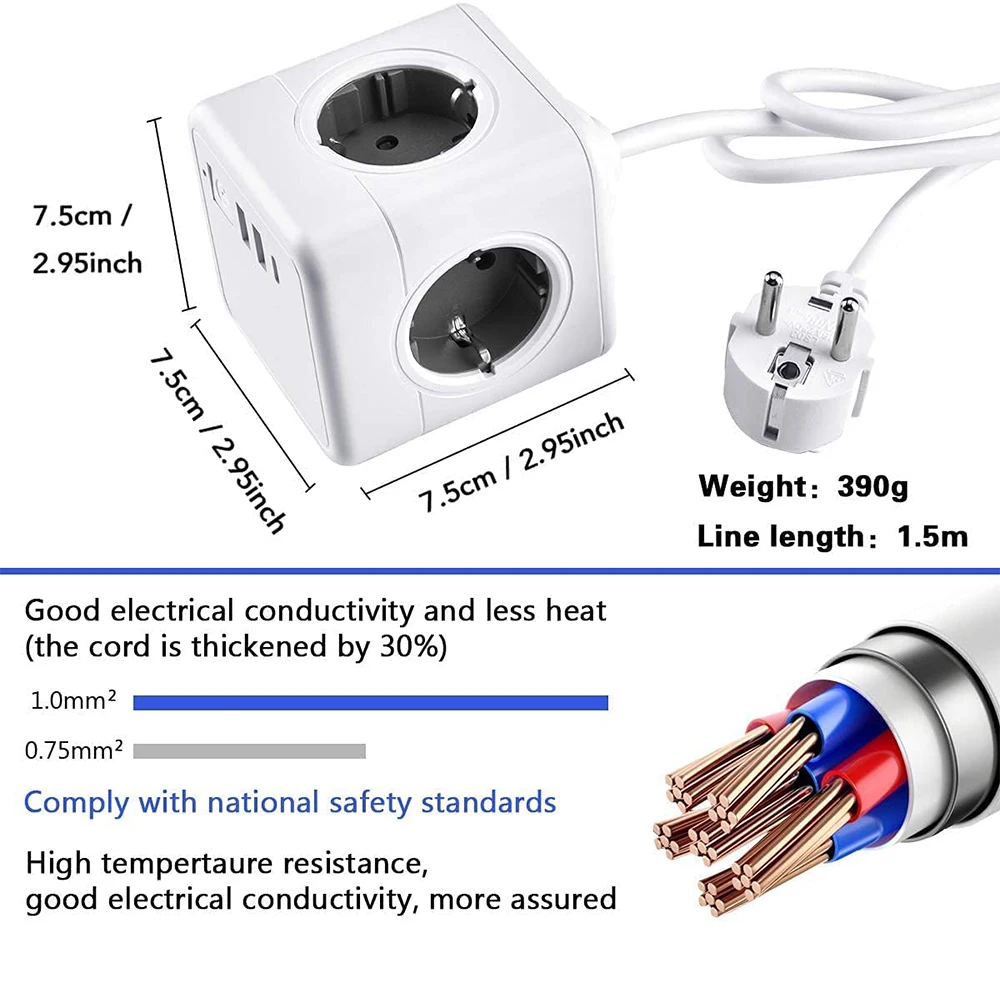 Удлинитель питания европейского стандарта с разъемом USB Type-C