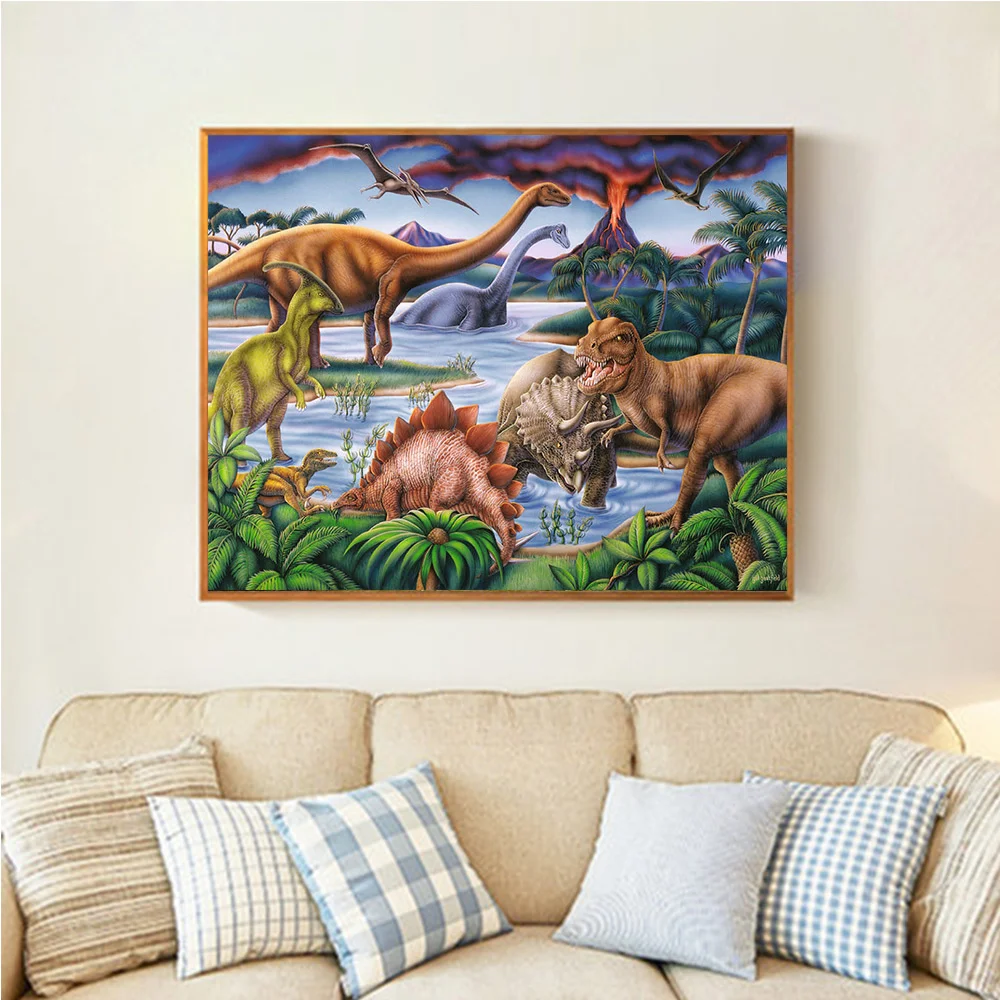 Алмазная живопись HUACAN, мозаика с динозавром 5d, для творчества, вышивка крестиком с животными, домашний декор, Алмазное искусство