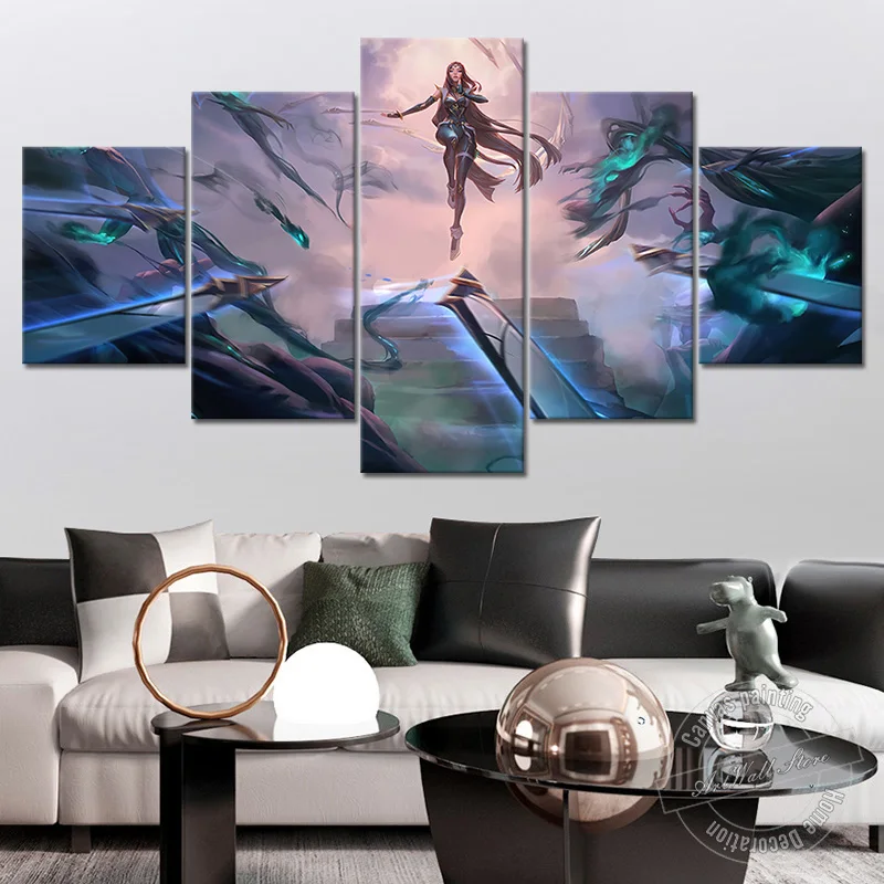 Модульные картины с аниме Akali KDA LOL, 5 панелей, HD принты, плак...