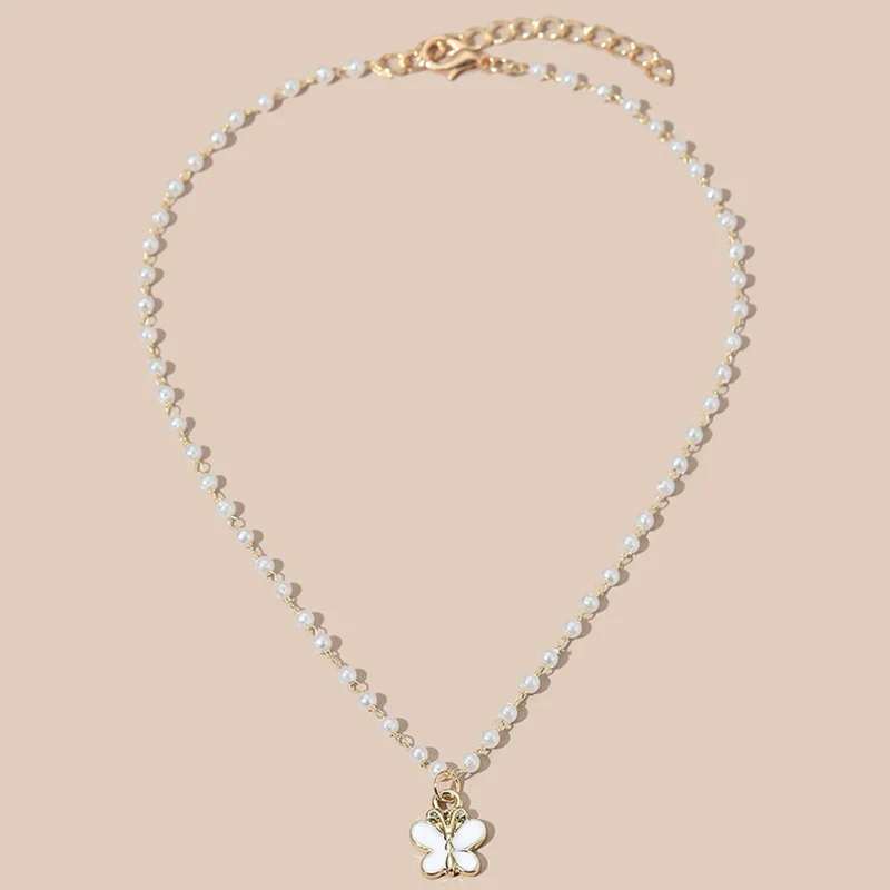 Милое романтическое короткое ожерелье с кулоном в виде розовой бабочки и искусственным жемчугом для женщин ожерелье до ключиц с маленькой маргариткой вишней ювелирные изделия