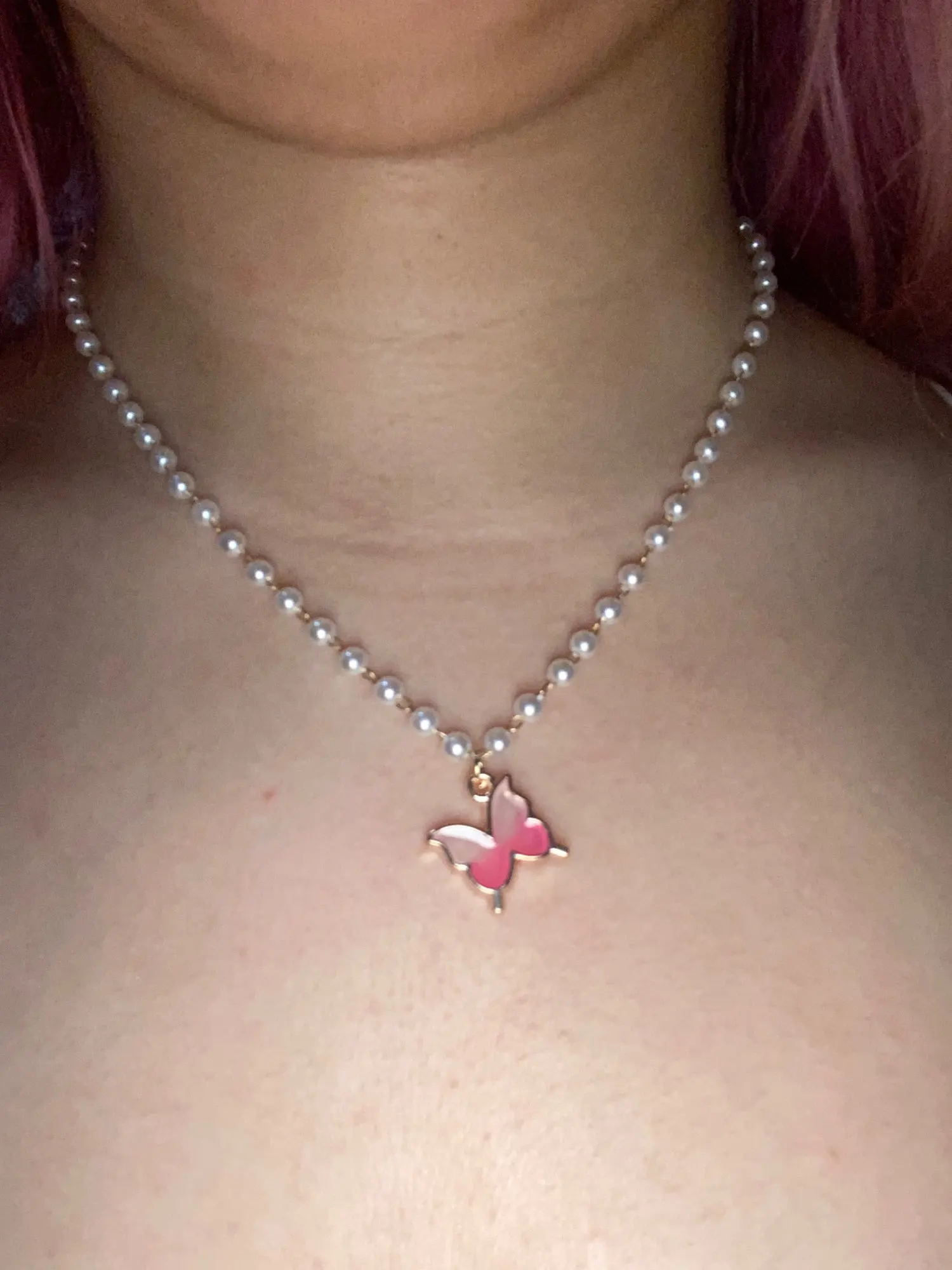 Милая романтическая розовая подвеска в виде бабочки, имитация жемчуга, короткое ожерелье для женщин, вишня, маленькая Маргаритка, ожерелье, ювелирное изделие