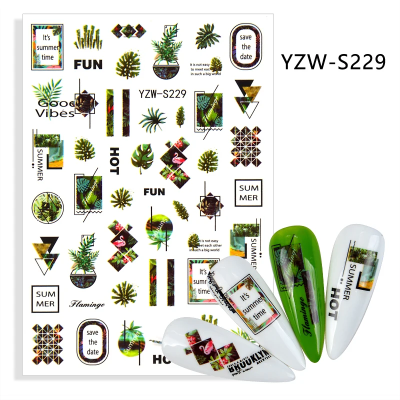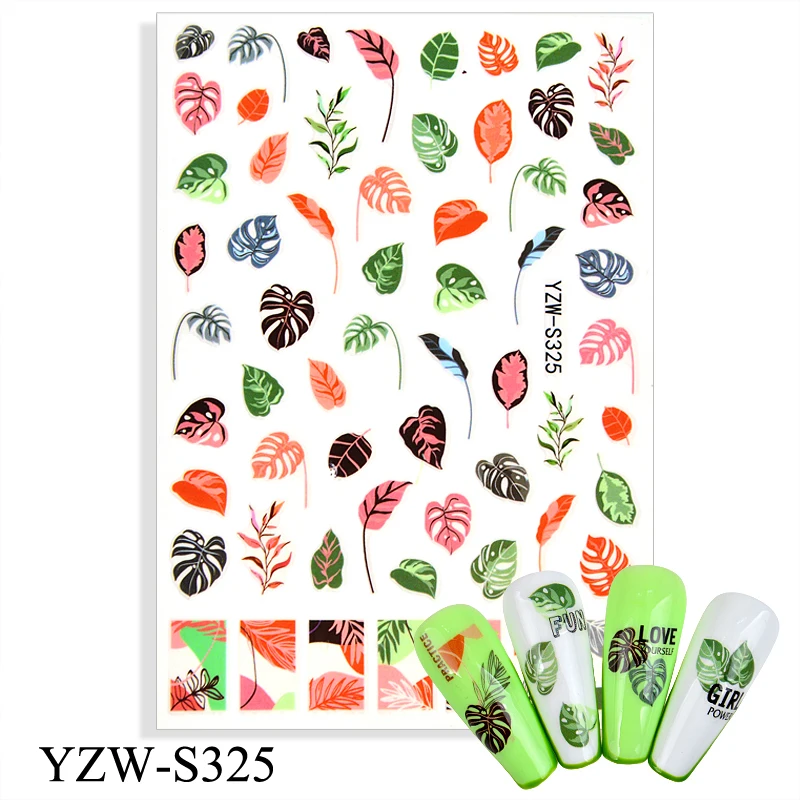 3D наклейки для ногтей, самоклеющиеся наклейки, слайдер, тропические джунгли, листья, трава, дизайн ногтей, украшения, аксессуары из фольги для ногтей