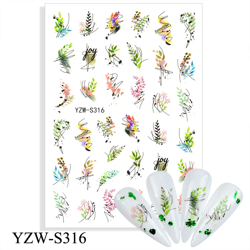 Зеленые большие листья, наклейка для ногтей s, лес, клейкая наклейк...