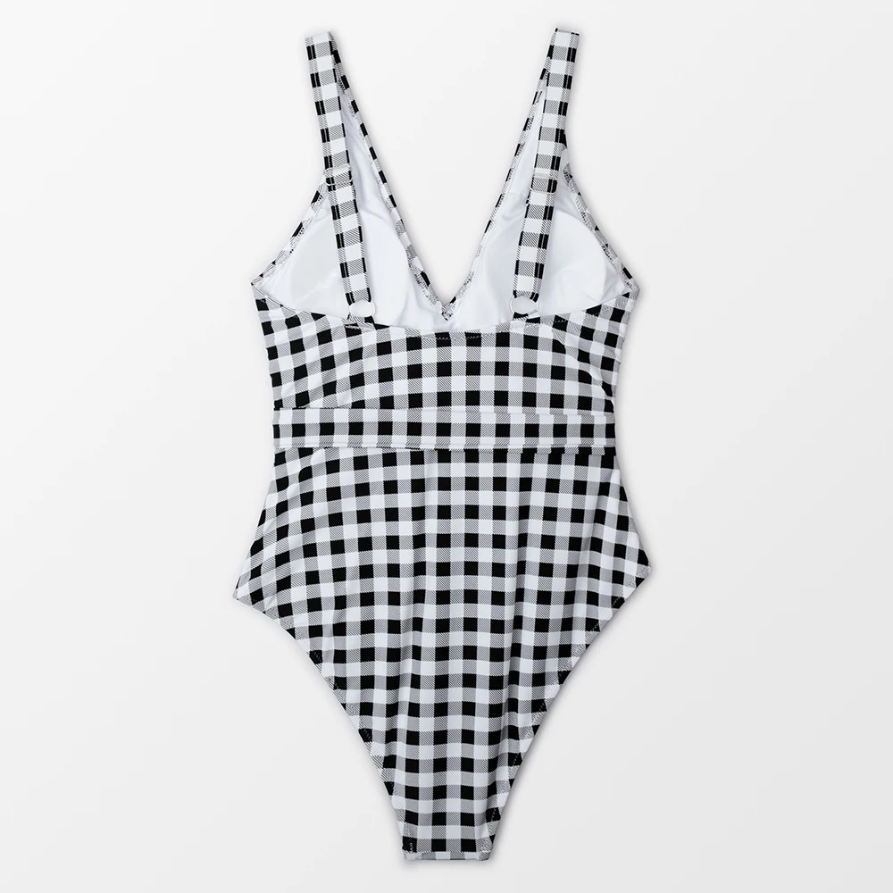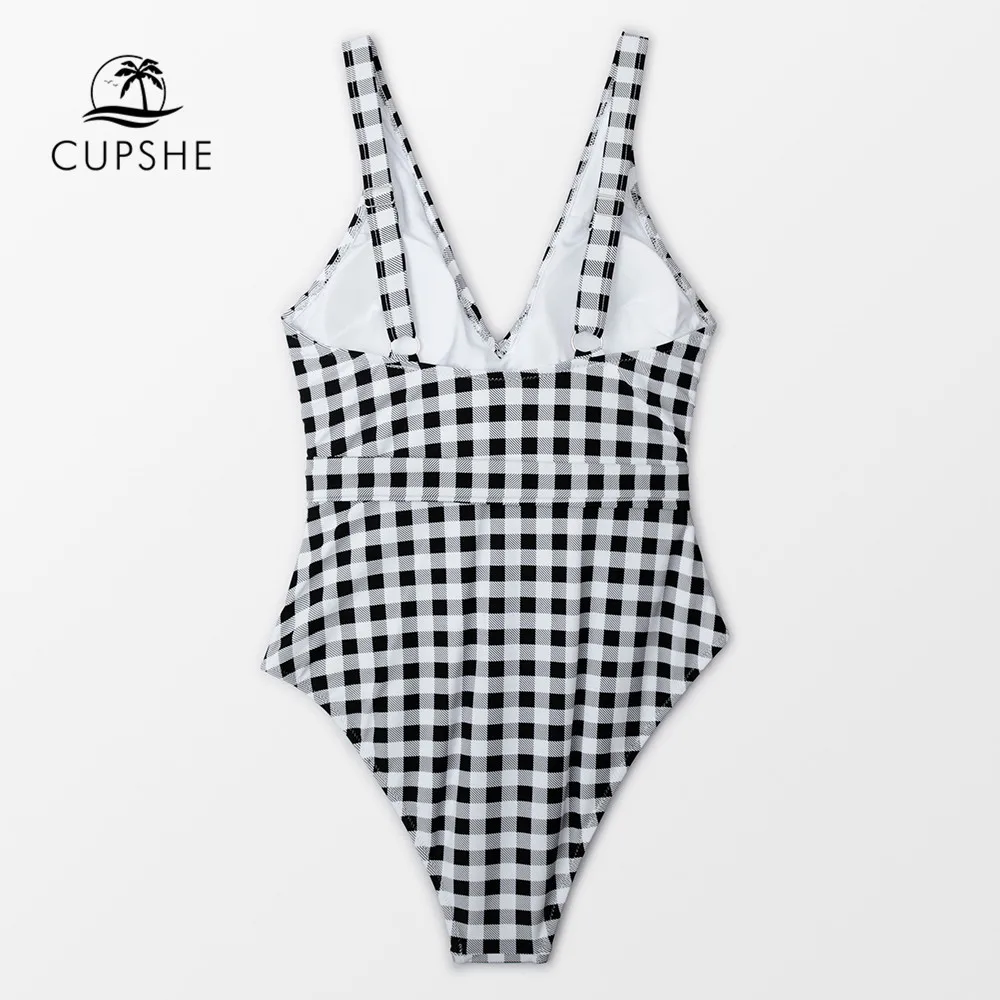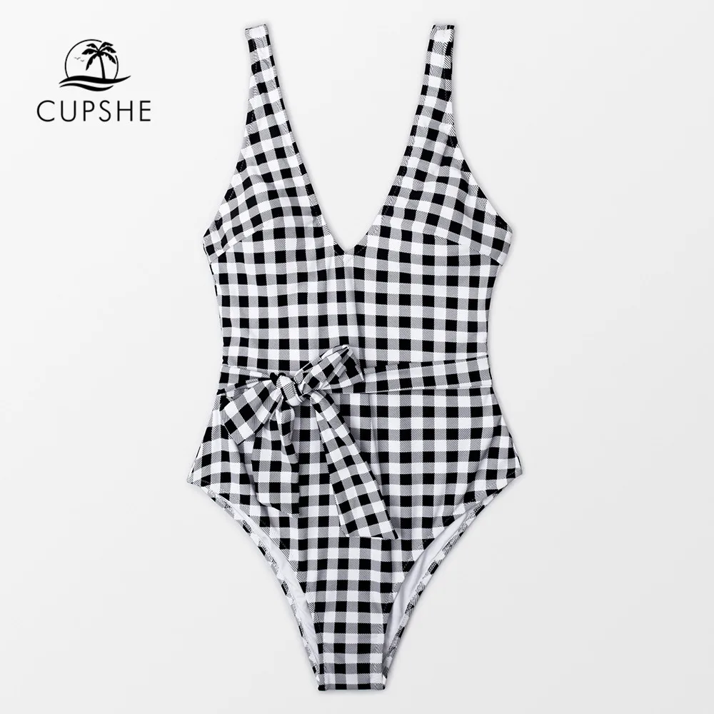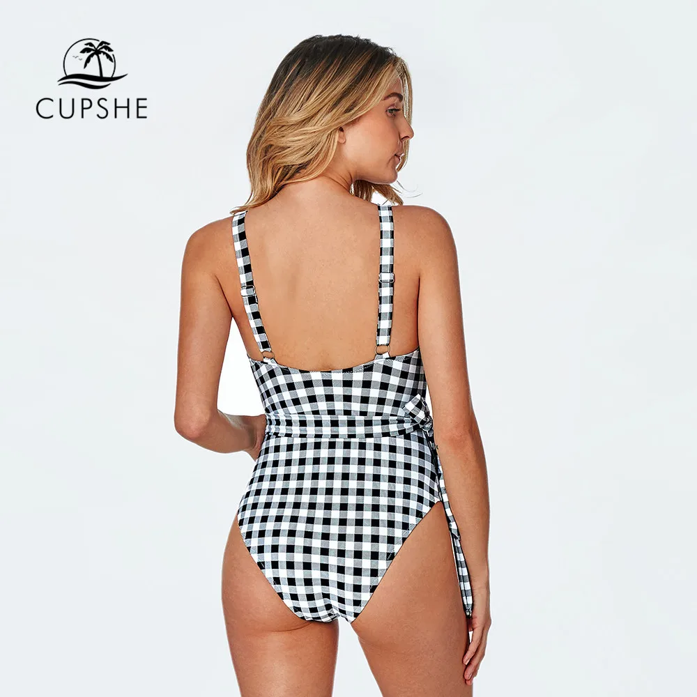 CUPSHE Женский Цельный купальник с v-образным вырезом и съемным поясом, сексуальный черно-белый монокини в мелкую клетку, 2022, пляжные купальные костюмы, купальники