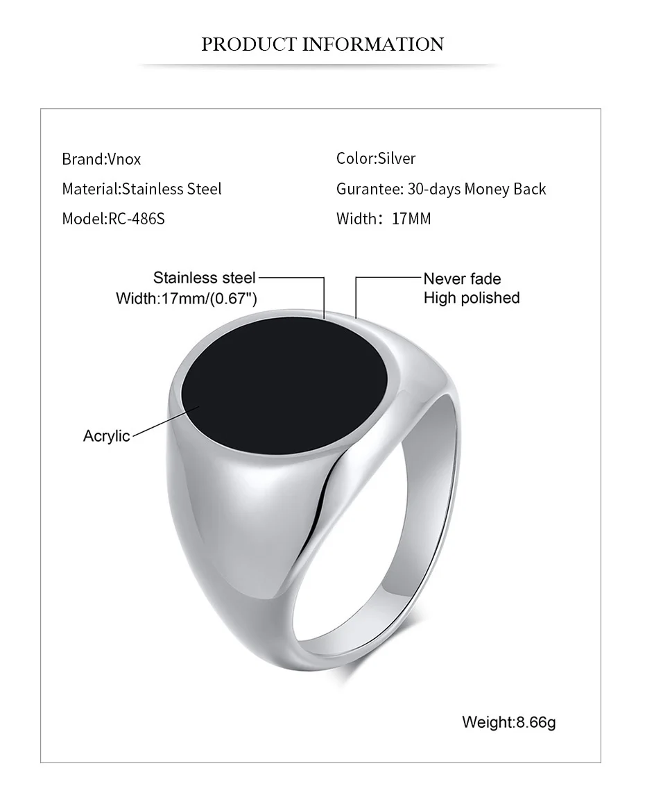 Вывеска Vnox из глянцевой нержавеющей стали с гравировкой на палец ...