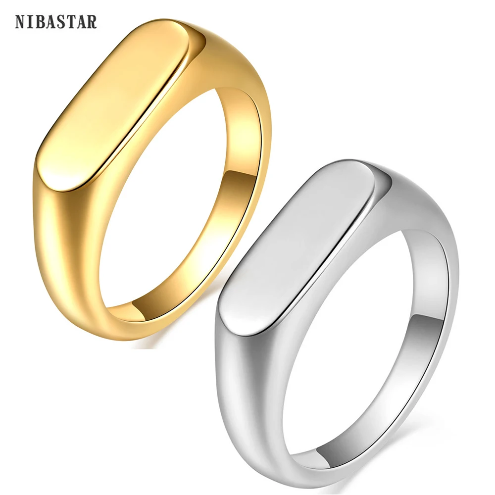 Минималистичное простое овальное кольцо для женщин, квадратное кольцо из нержавеющей стали, значок с плоским верхом, аксессуары, оптовая продажа