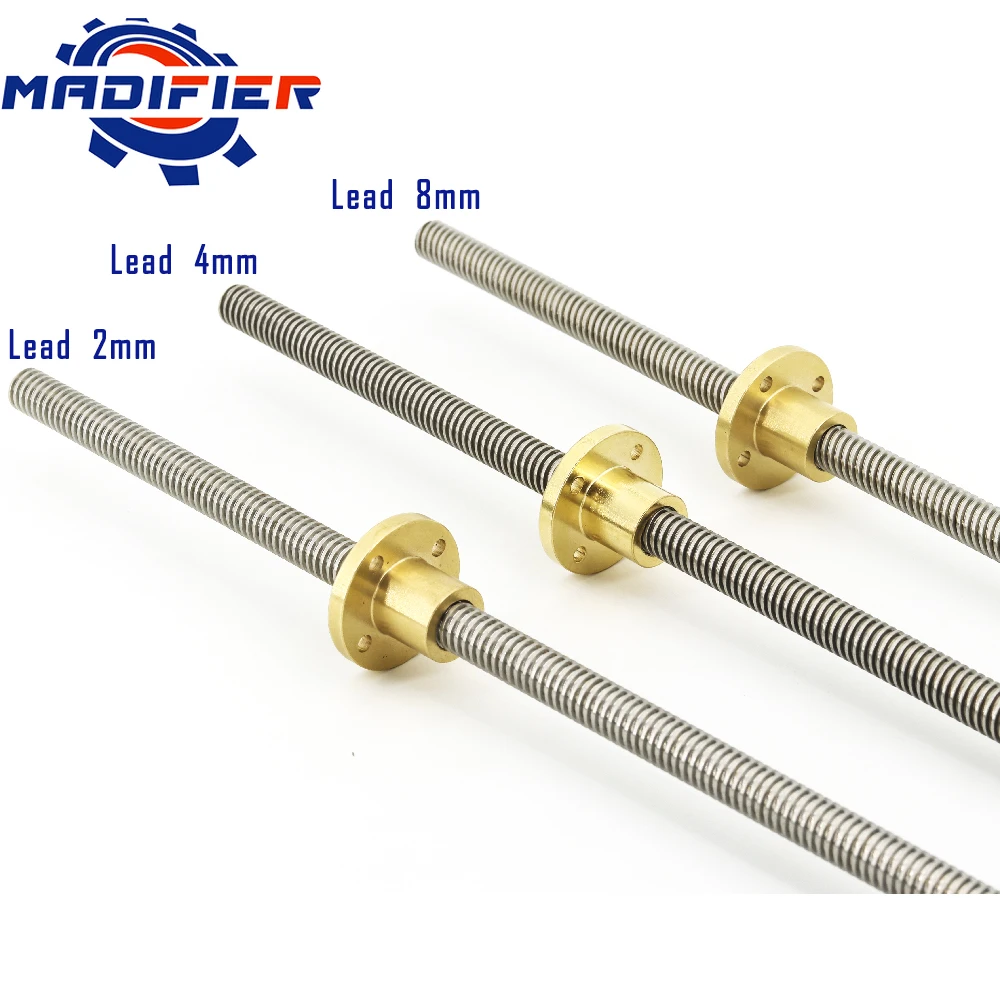 Трапециевидный шпиндель T10 из нержавеющей стали 304, длина винта 700 мм, свинец 2 мм, 4 мм, 8 мм, 10 мм, 12 мм, 1 шт. с медной гайкой