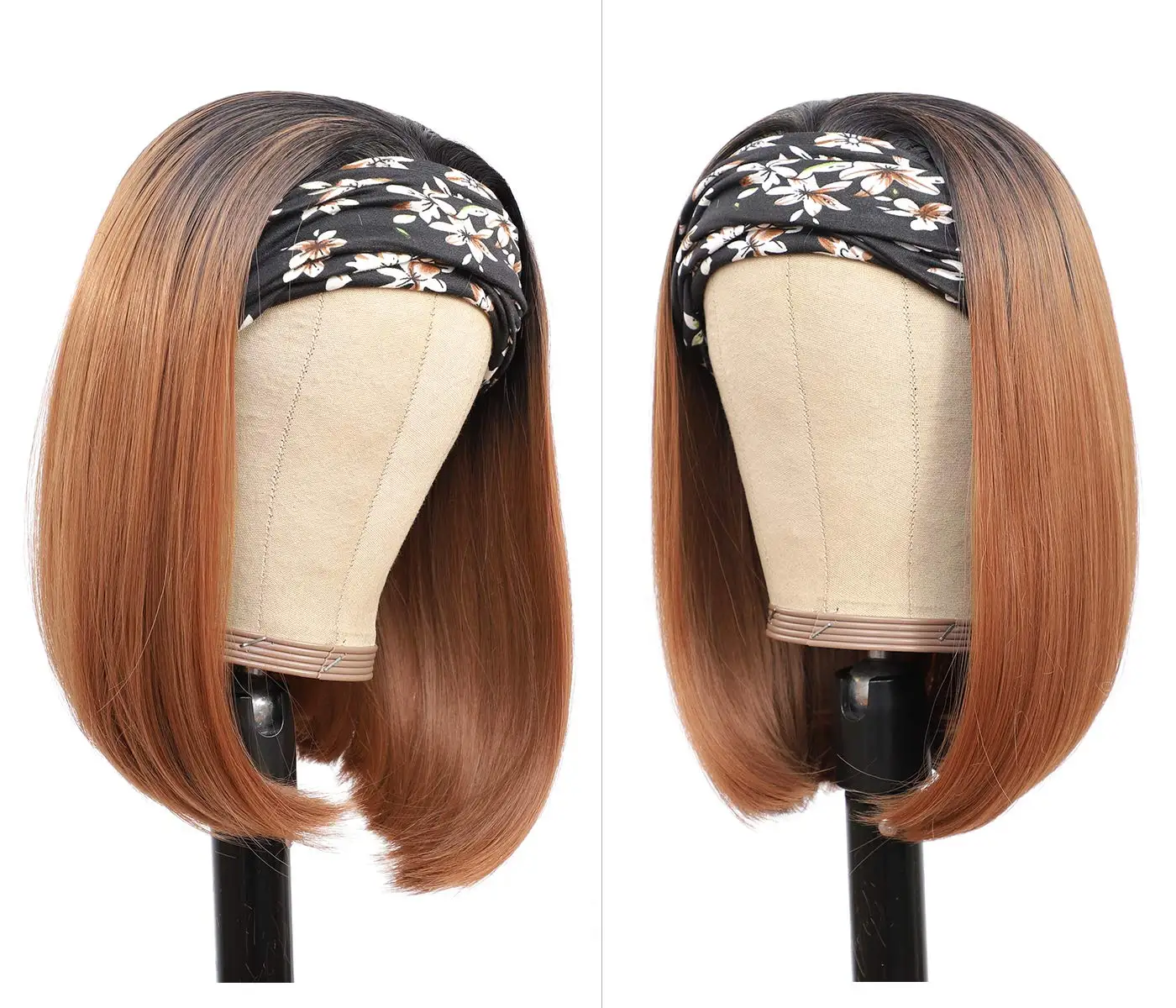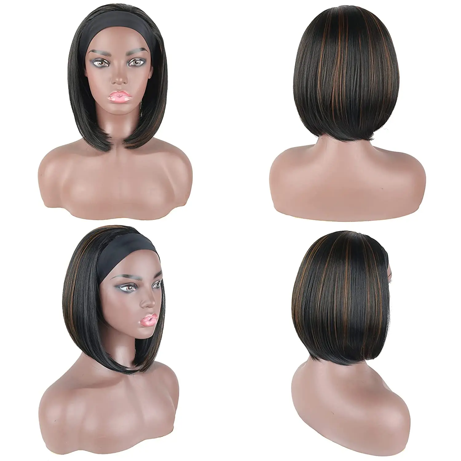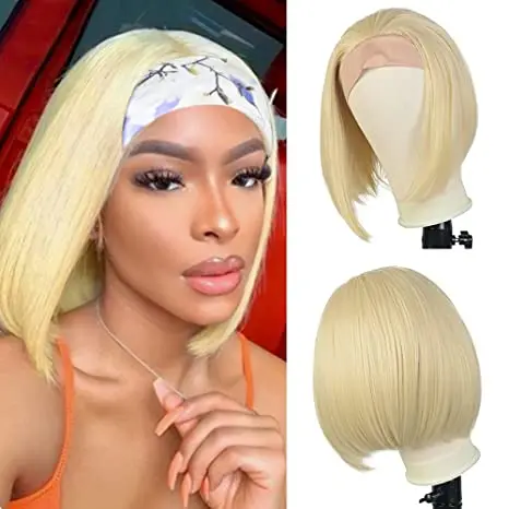 Афро прямые боб парик с головной повязкой Синтетические прямые парики для чернокожих женщин машинное изготовление смешанный блонд выглядит естественно для ежедневного использования