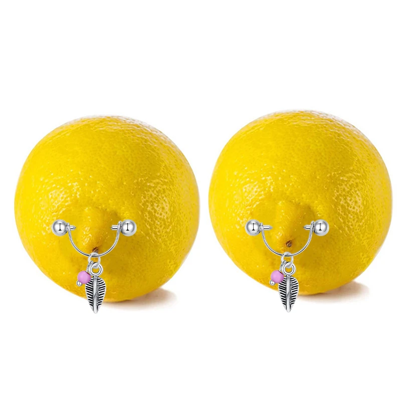Регулируемый поддельный пирсинг для соски, кольца с подвеской, белы...