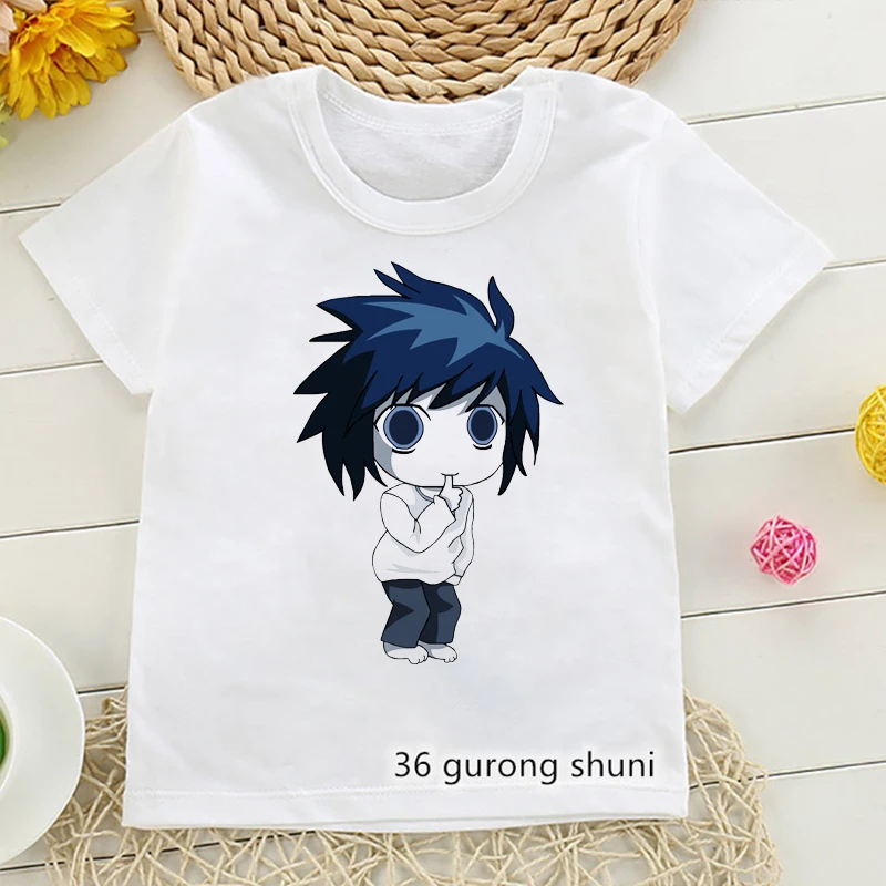 Футболка Kawaii L LK с изображением героев мультфильма тетрадь смерти, футболка для мальчиков, аниме одежда японская манга, детская одежда, детская одежда, футболки с коротким рукавом