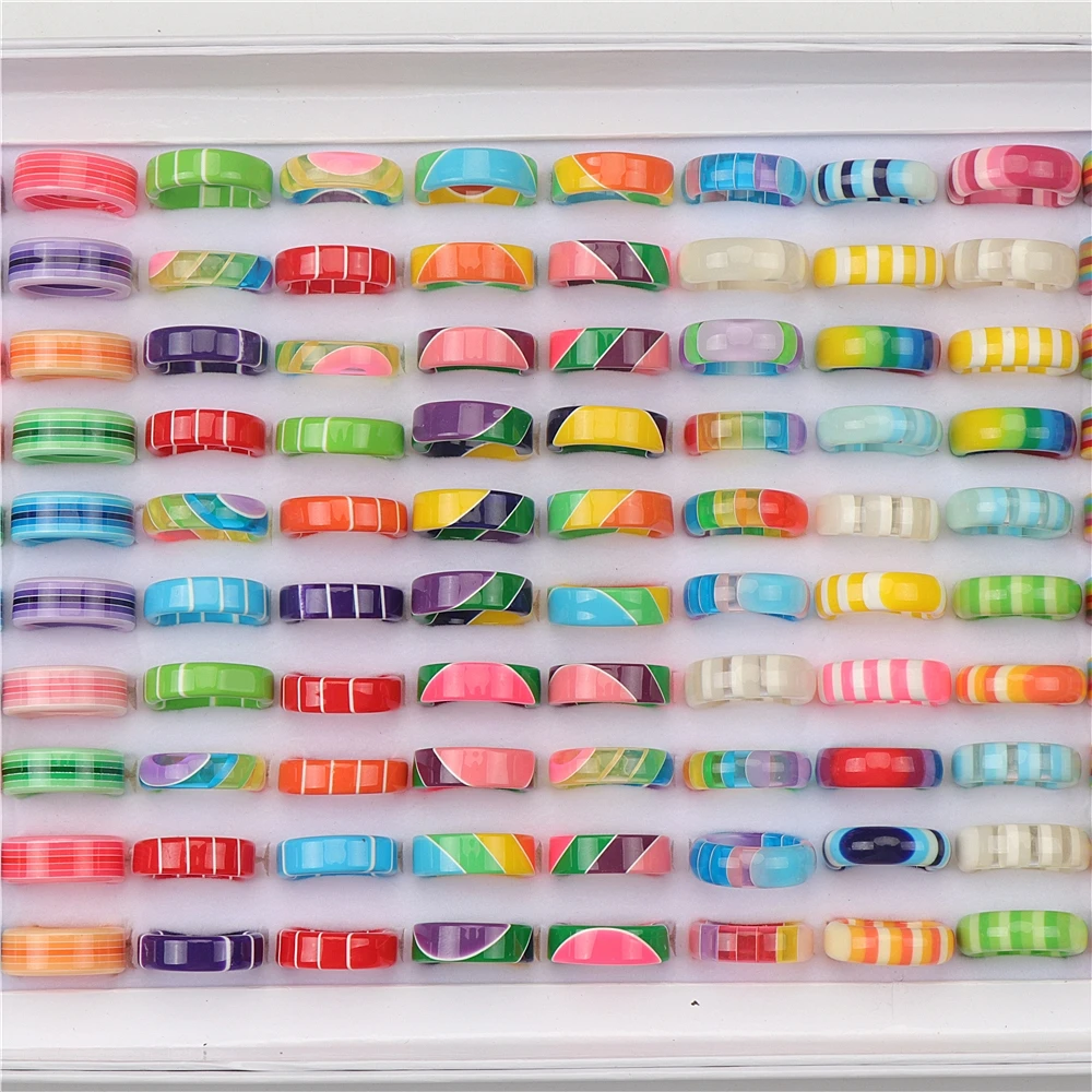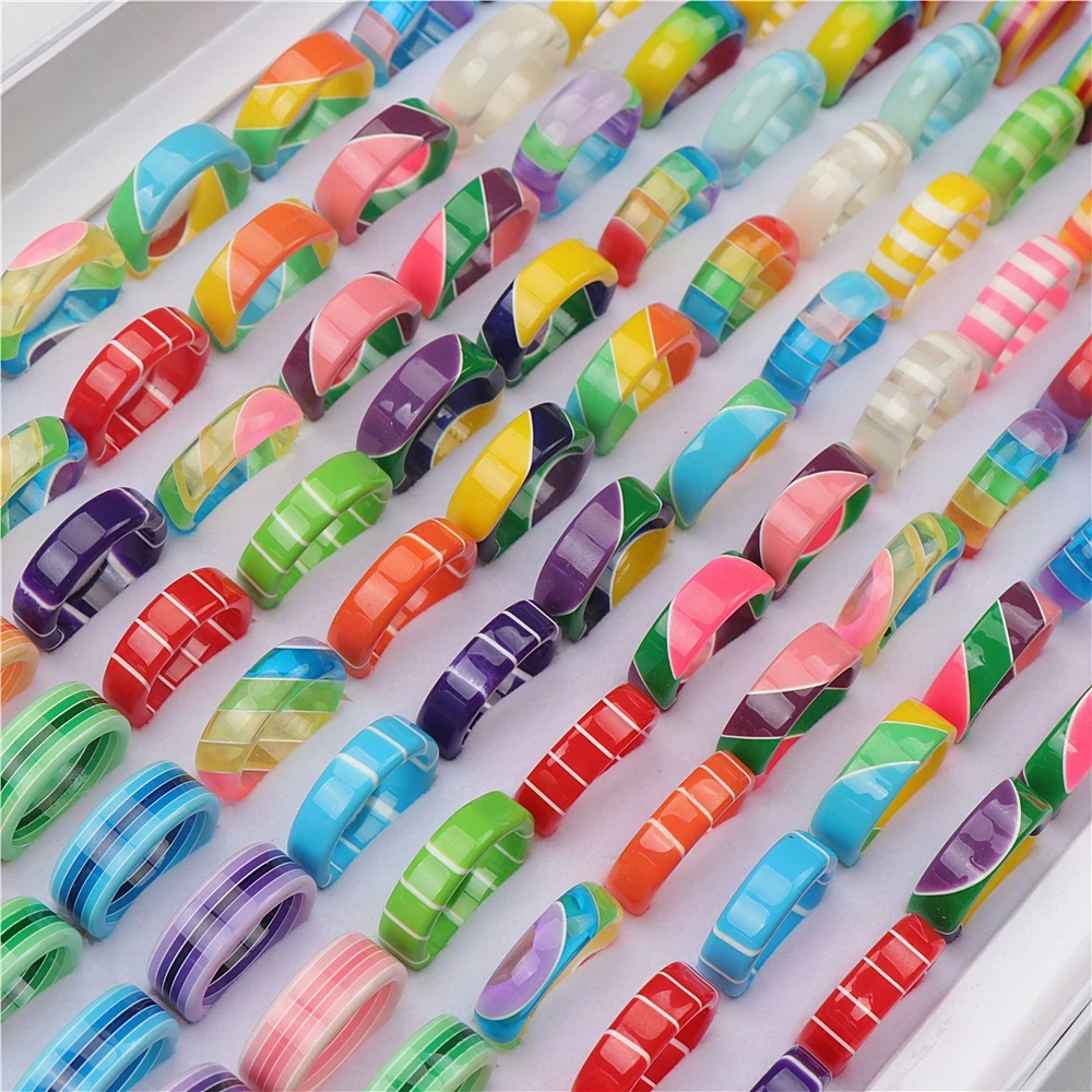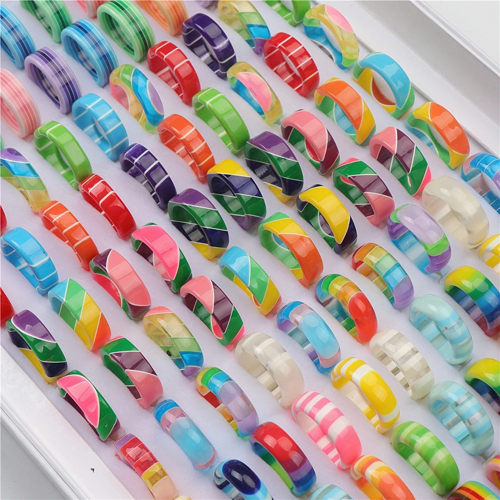 Модные Красочные Акриловые Кольца из смолы, 50 шт.лот, ювелирные из...