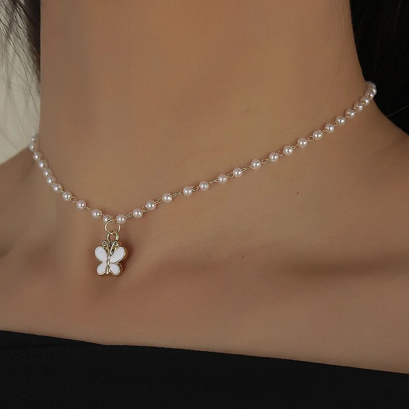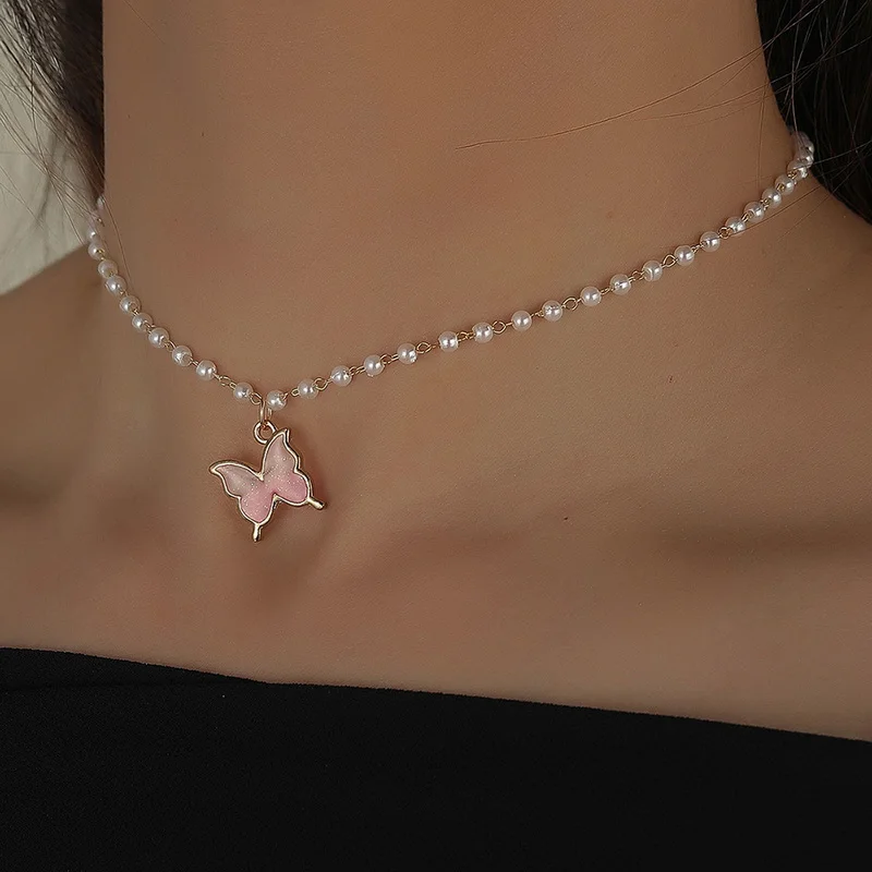Колье-чокер женское на шею, с бабочкой и жемчугом