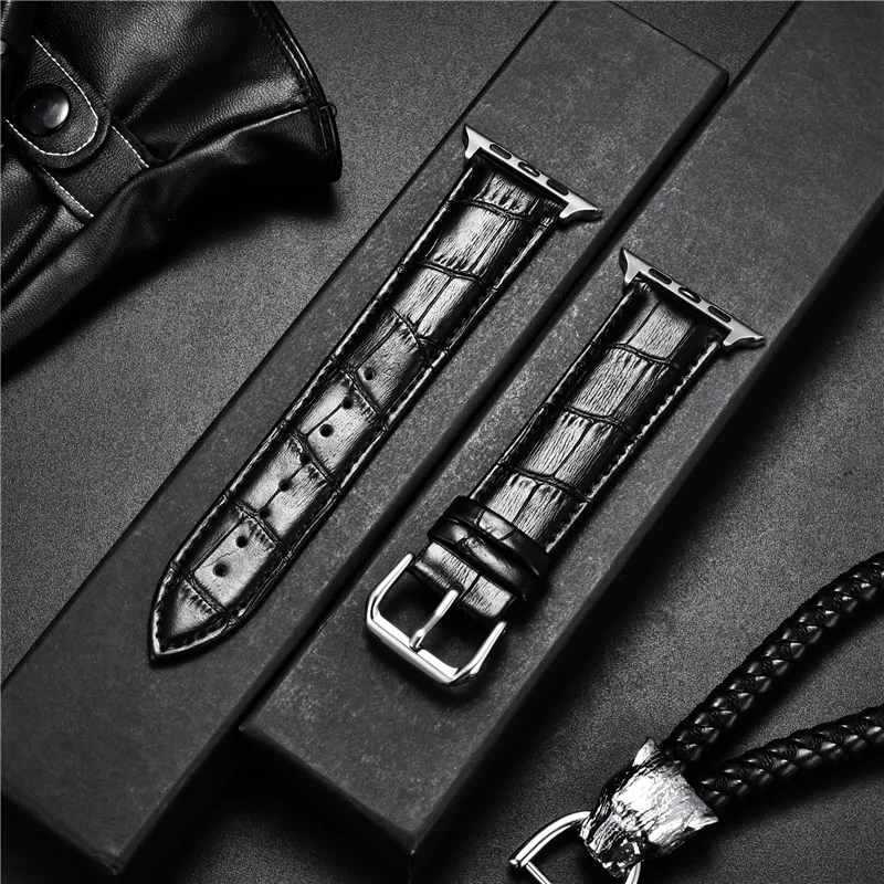 Кожаный ремешок для Apple Watch 7 6 5 4 SE, деловой кожаный браслет...