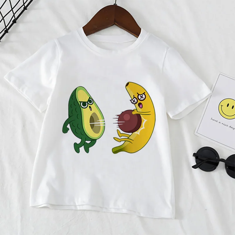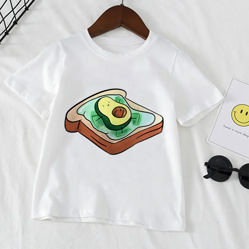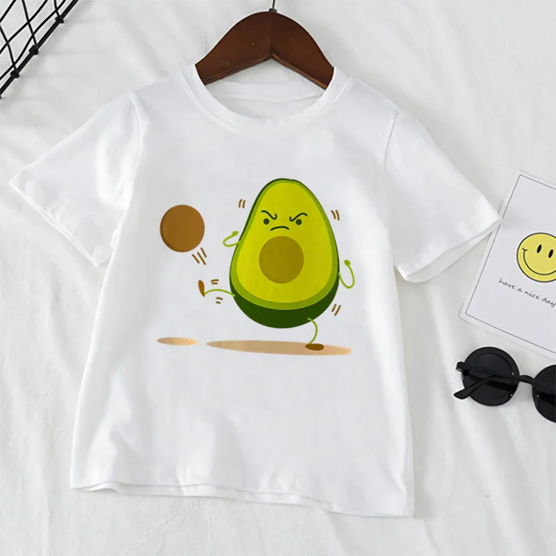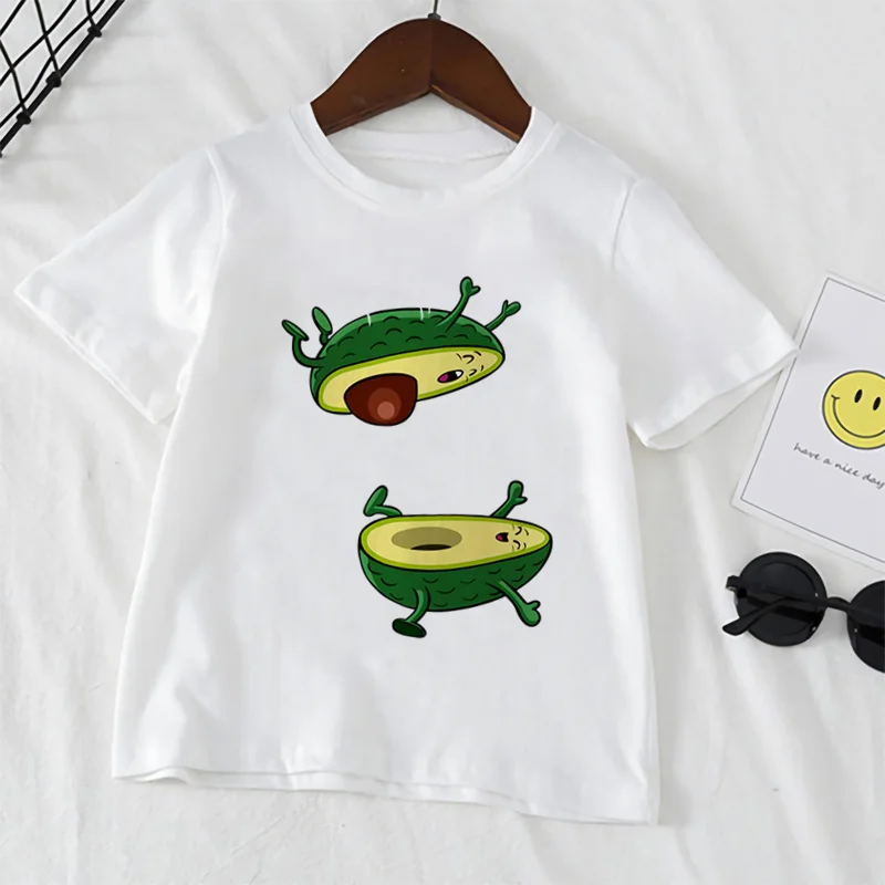 Детская футболка с авокадо, милые Мультяшные футболки для девочек, топы с коротким рукавом и принтом для мальчиков, повседневная одежда, модная одежда с милым рисунком, YKP170