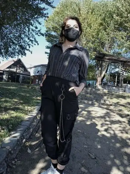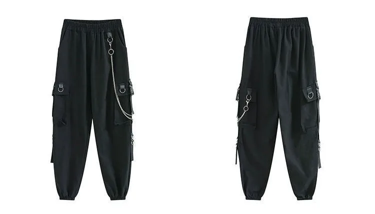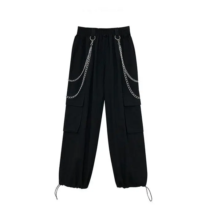 Брюки-карго женские, черные, в готическом стиле, с цепочкой, со съе...