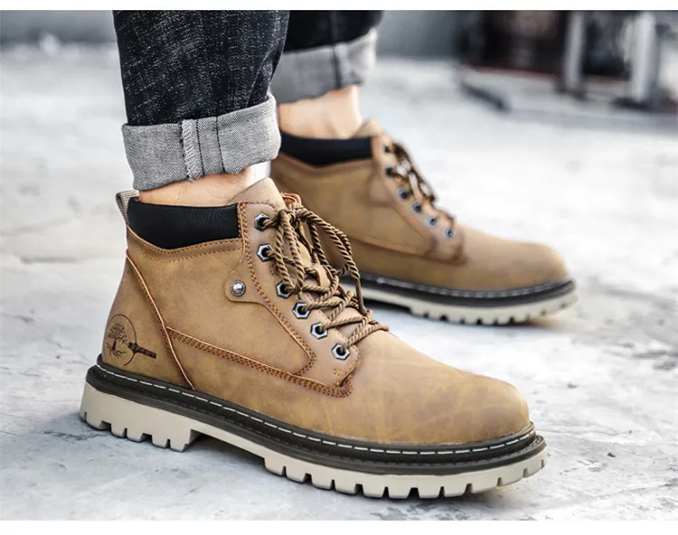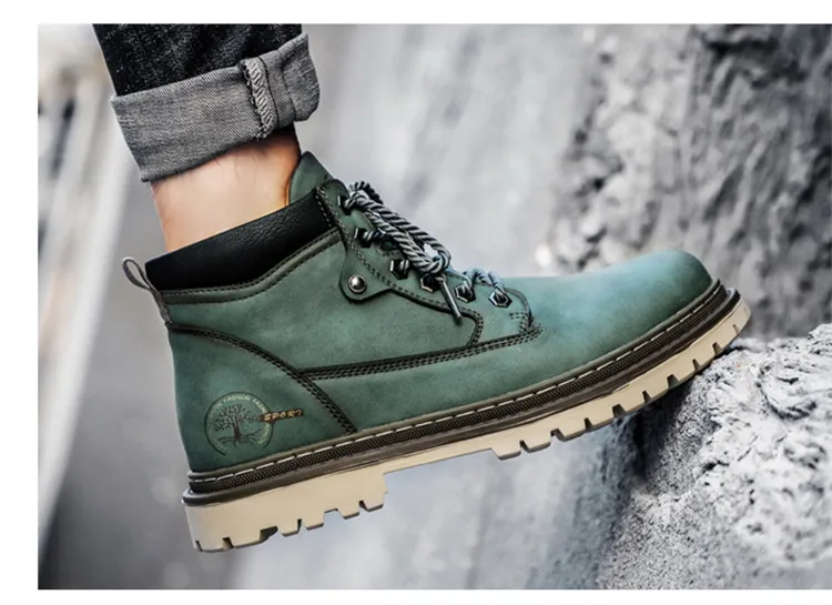 Новинка; Модные Зеленые мужские Ботинки Martin; Хорошее качество; Зимние кожаные ботинки для мужчин; Нескользящая Мужская Рабочая обувь; botas hombre