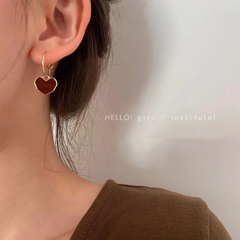 Милые бордовые эмалированные серьги-Крючки в форме сердца для женщи...