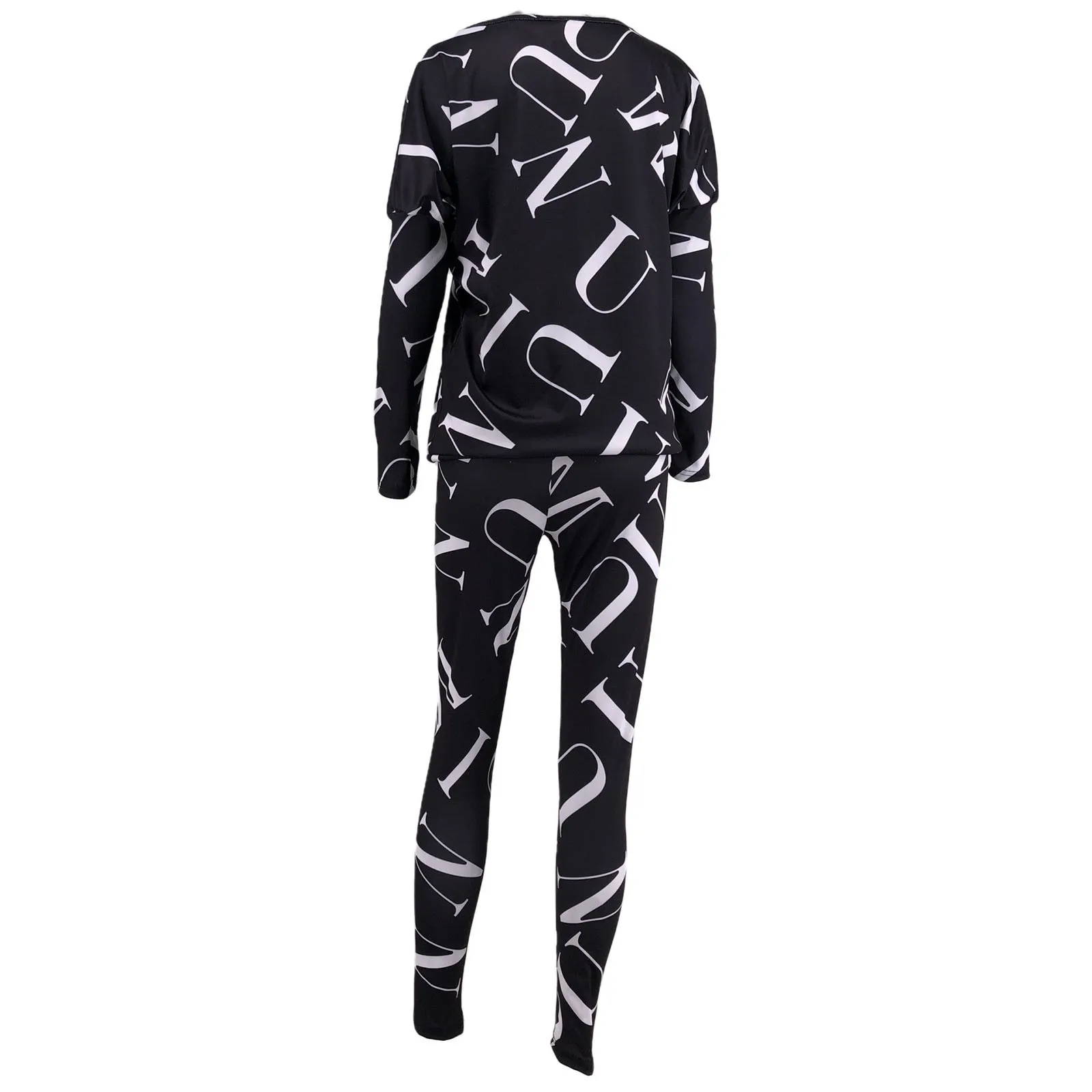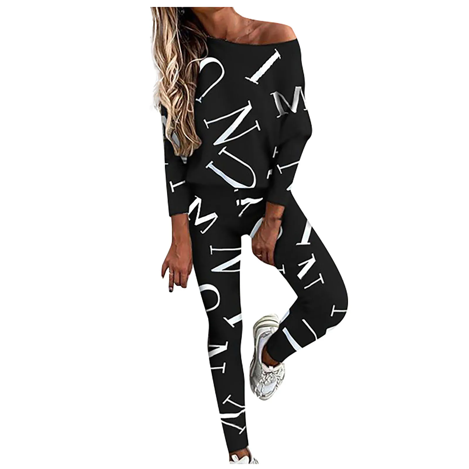 Костюм женский с открытыми плечами, повседневный модный брючный костюм с буквенным принтом, с рукавом летучая мышь, спортивный