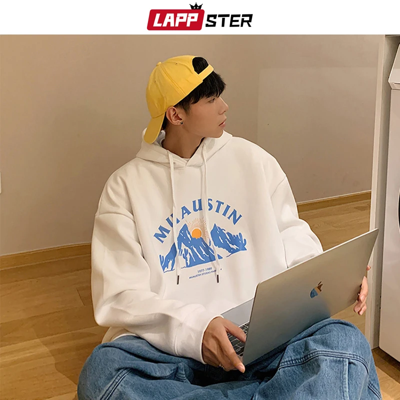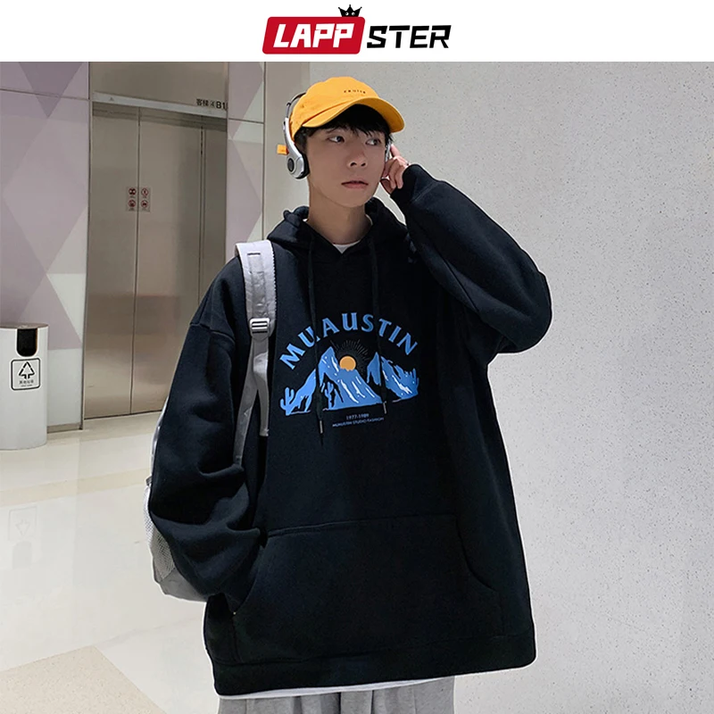 Толстовка LAPPSTER мужская с капюшоном в стиле Харадзюку, Свитшот в винтажном стиле Японская уличная одежда, худи в стиле хип-хоп, большие размеры, 2022