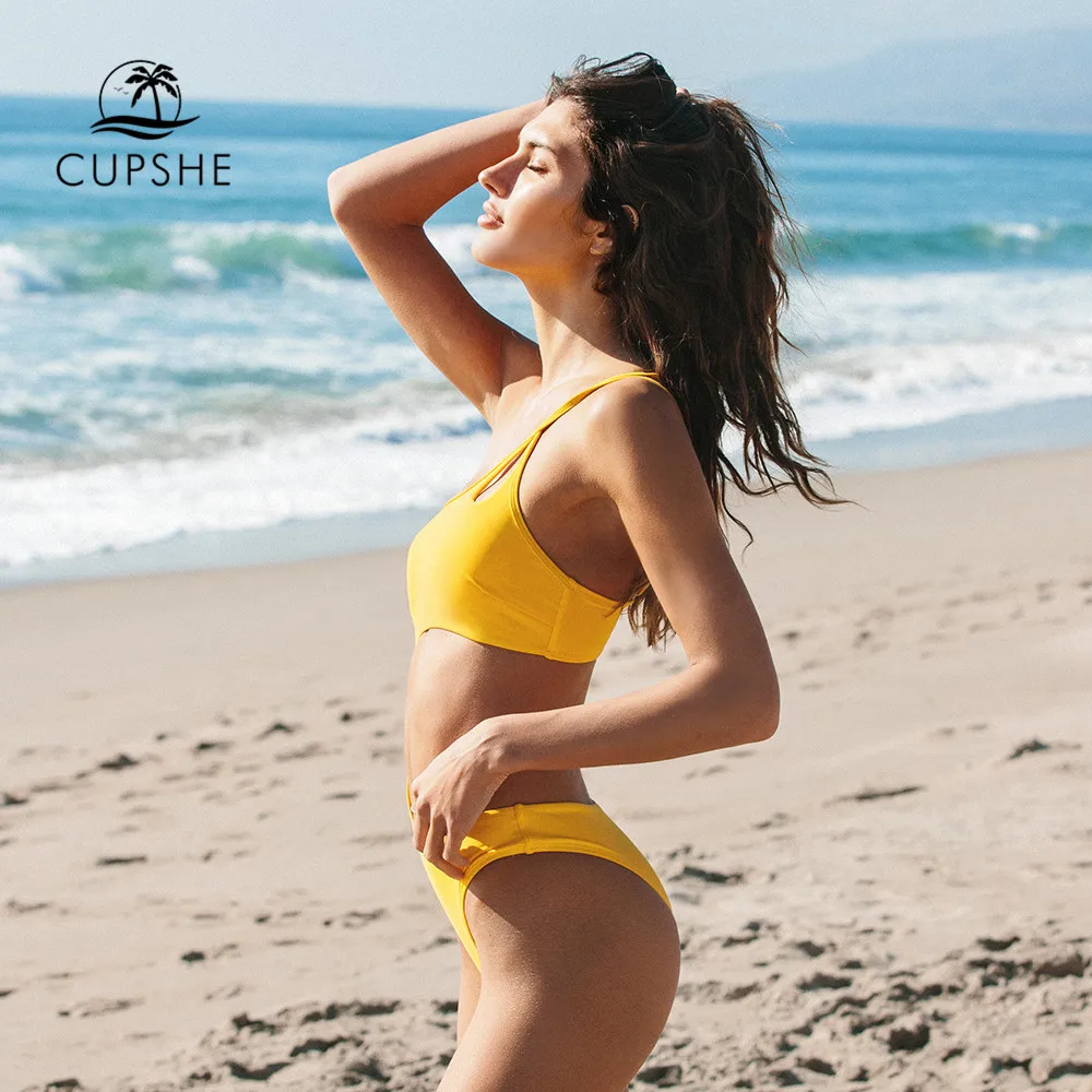 Cupshe, желтое перо, пряжа, однотонный комплект бикини, простое, с ...