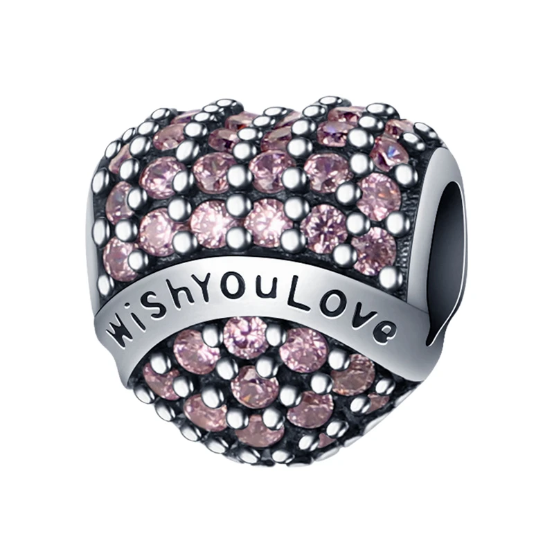 Лидер продаж, подвеска серебряного цвета, сверкающее циркониевое сердце, мама, воротник, бусина, подходит для оригинального браслета Pandora, подвеска, модные ювелирные изделия