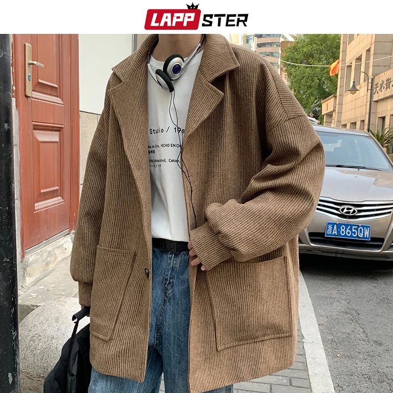 Мужская винтажная куртка в стиле Харадзюку LAPPSTER, куртки большог...