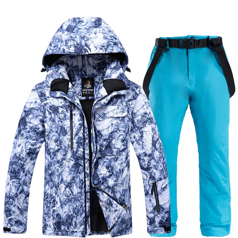 Мужской лыжный костюм, теплый водонепроницаемый ветрозащитный костю...