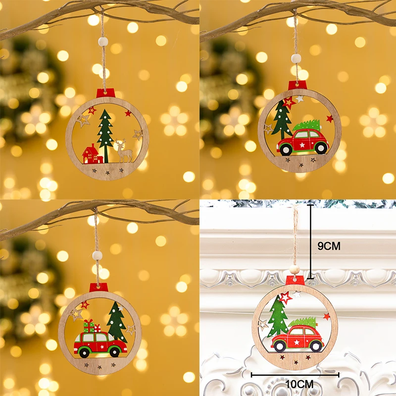 Рождественские украшения, деревянный узор автомобиля, подвесной кул...