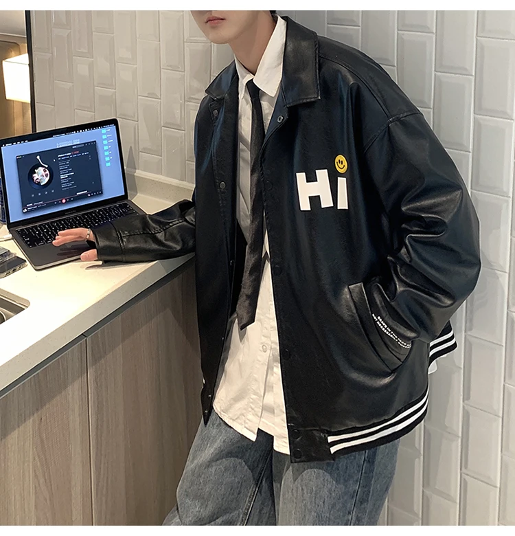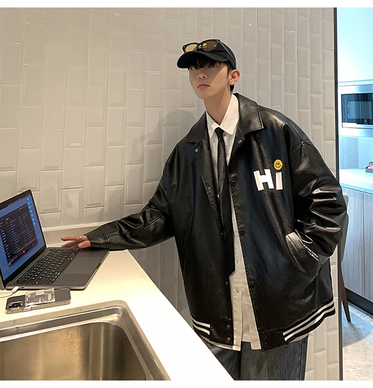 Куртка-бомбер LAPPSTER мужская оверсайз, кожаная ветровка, стиль Харадзюку, K-POP, 2022